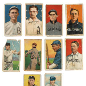 Collection of ten 1909-1911 T206 White Border cards, all featuring Polar Bear advertising reverses. Condition Pr to Fr overall (mostly Pr), with two Gd. This collection consists of the following: Brain, Dygert, Easterly, Fiene/portrait, Ford (missing pieces), B. Graham, Griffith/batting (Pr-Fr), Grimshaw, Hummel, and McIntyre/Brooklyn & Chicago. Total: 10 cards.