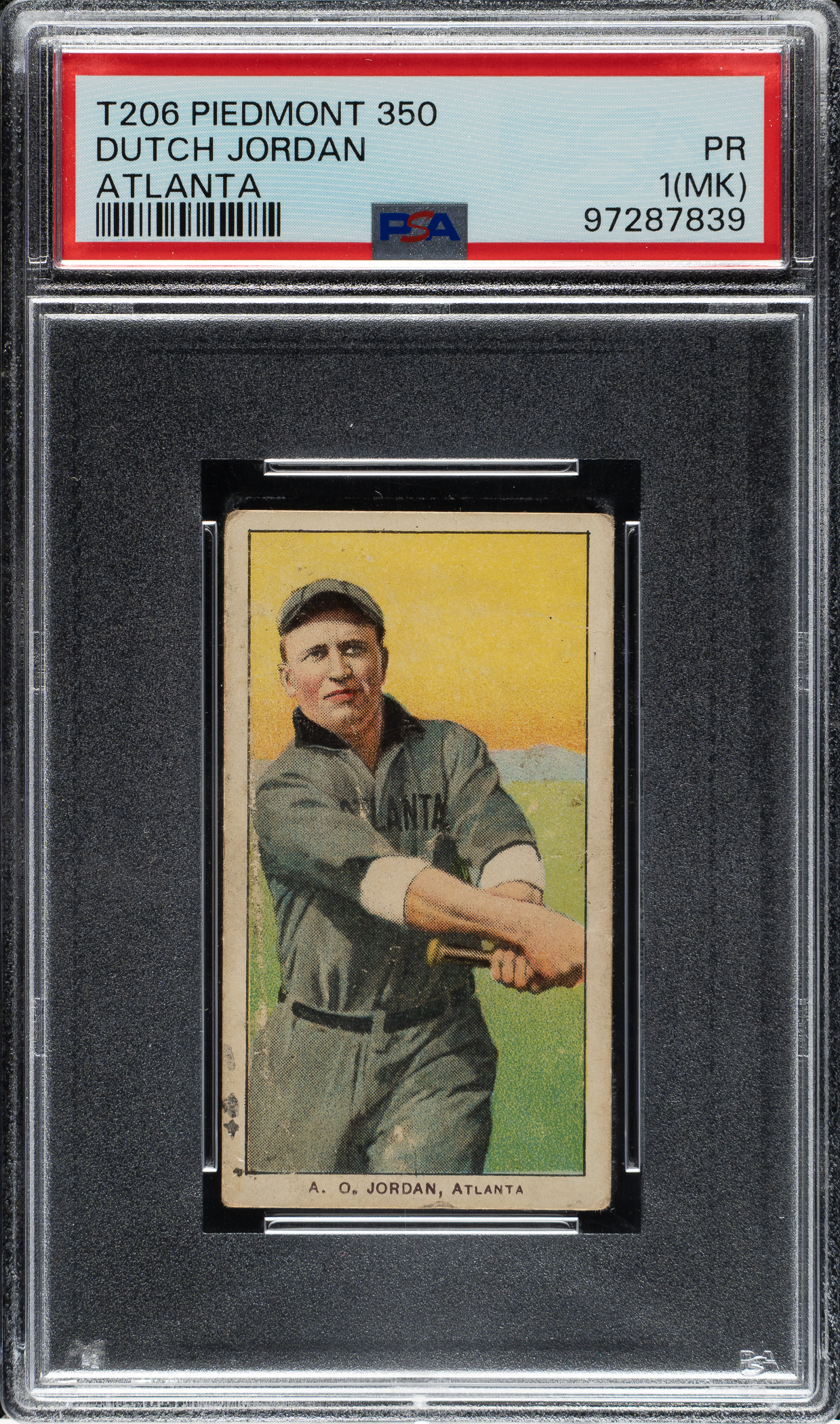 Lot # 627: 1909-1911 T206 White Border Dutch Jordan Southern Leaguer PSA POOR 1 (MK)