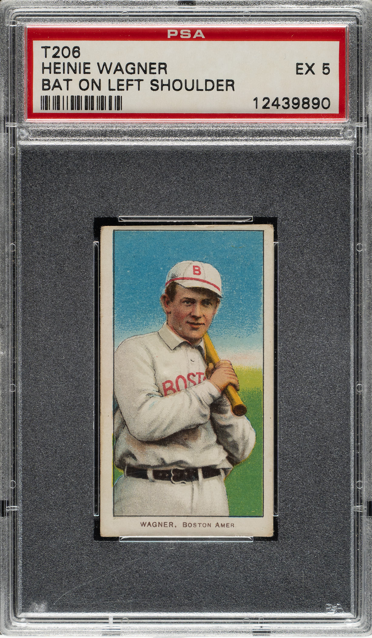 Lot # 1104: 1909-1911 T206 White Border Heinie Wagner Bat on Left Shoulder PSA EX 5