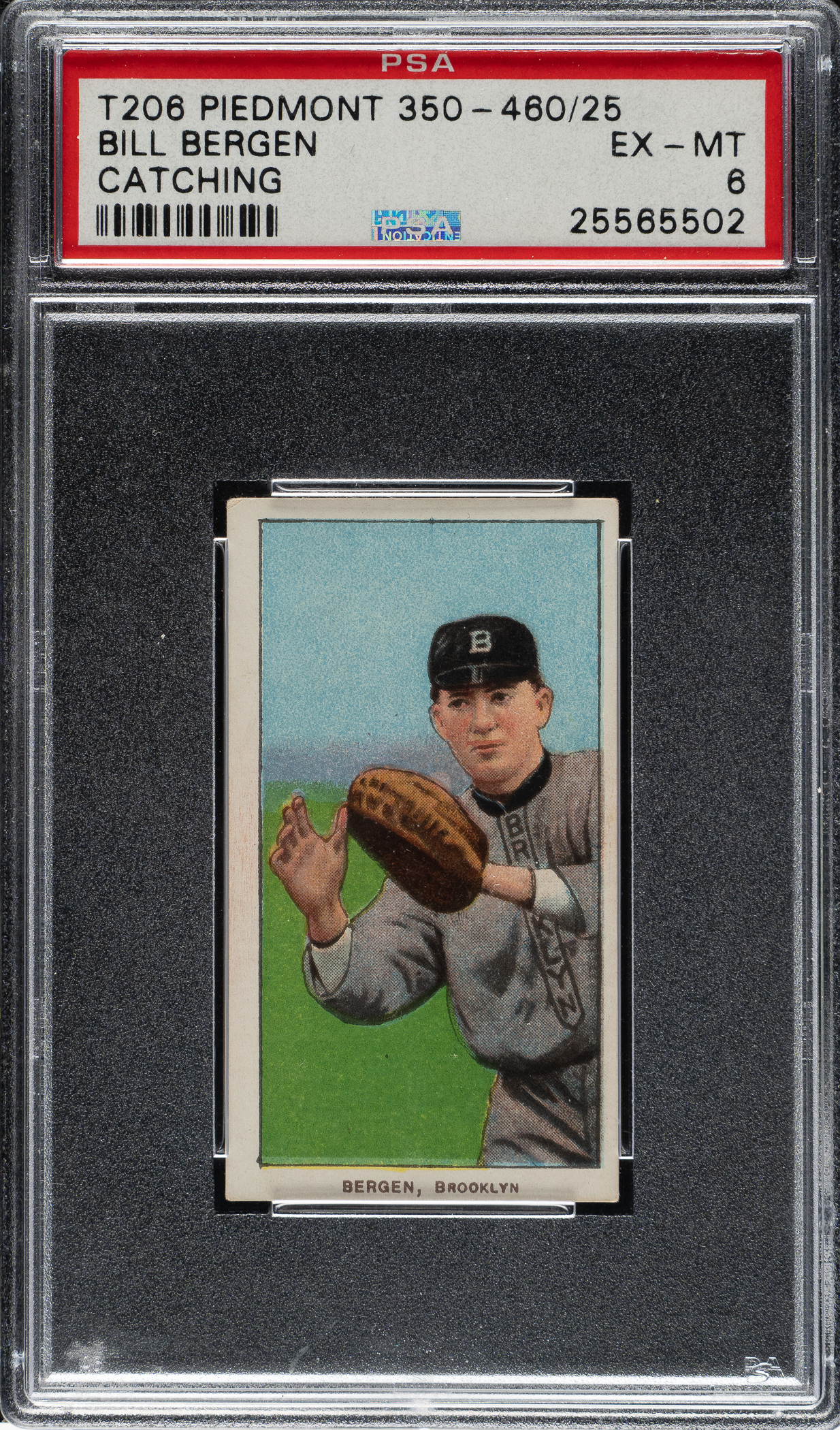 Lot # 256: 1909-1911 T206 White Border Bill Bergen Catching PSA EX-MT 6