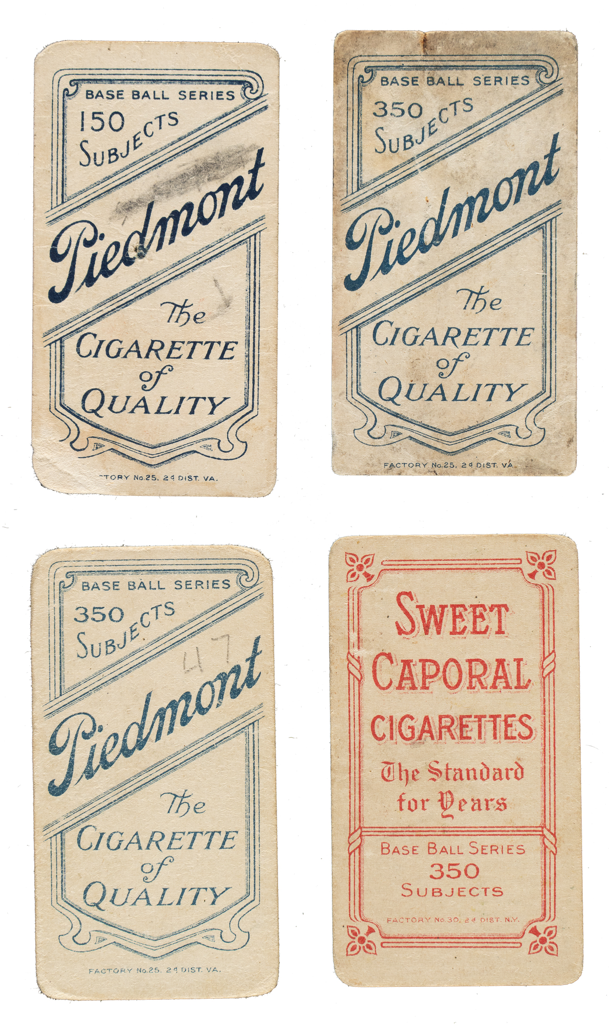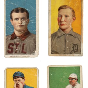 Collection of thirty 1909-1911 T206 White Border cards, featuring Hall of Famers Rube Waddell, Miller Huggins, and Hughie Jennings. Condition is 20% Gd (mostly Gd and including one Vg-Ex) and 80% Pr to Fr. This collection consists of the following: Anderson, Becker, Burns, Campbell, Cravath, Devlin, Donovan/throwing, Dubuc, Flanagan, Gibson, D. Hoffman (piece missing from top edge), Huggins/hands at mouth (pencil on reverse, otherwise Pr-Fr), Jennings/portrait (Pr), Kissinger, Lattimore, Lindaman, Magee/with bat, M. McIntyre, Mowrey (extremely Pr condition), Myers/fielding, Niles, Perring, Pickering, Powers (missing bottom-right corner), Ritter, Schaefer/Washington, Slagle, G. Stone, Waddell/portrait (Pr), and J. White (uneven right edge due to damage). Total: 30 cards.