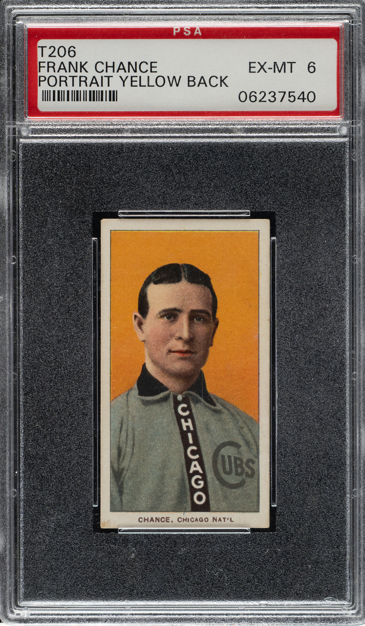 Lot # 338: 1909-1911 T206 White Border Frank Chance Portrait Yellow Background PSA EX-MT 6