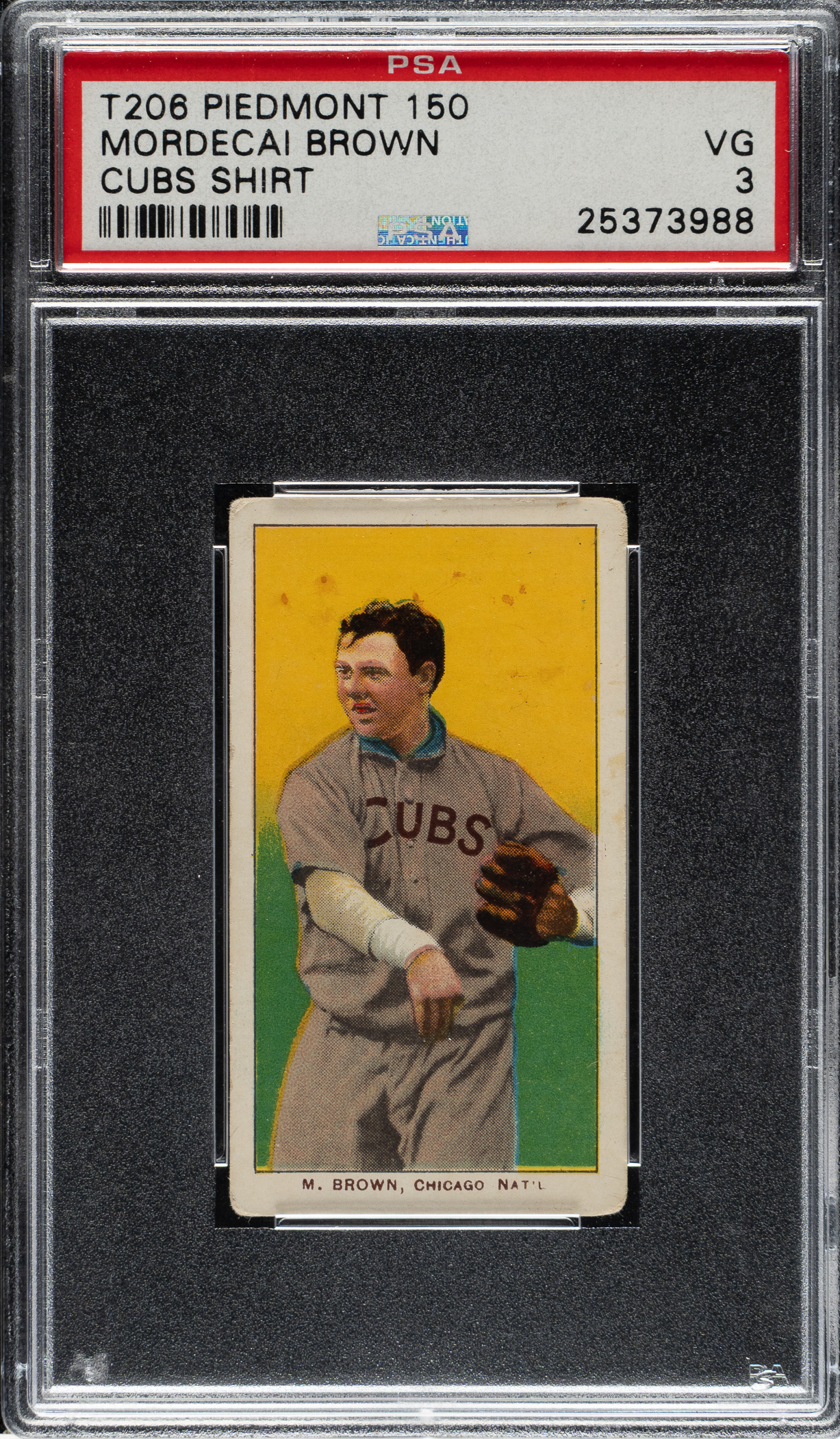 Graded VG 3 by PSA. Chicago Cubs Hall of Famer Mordecai Brown.