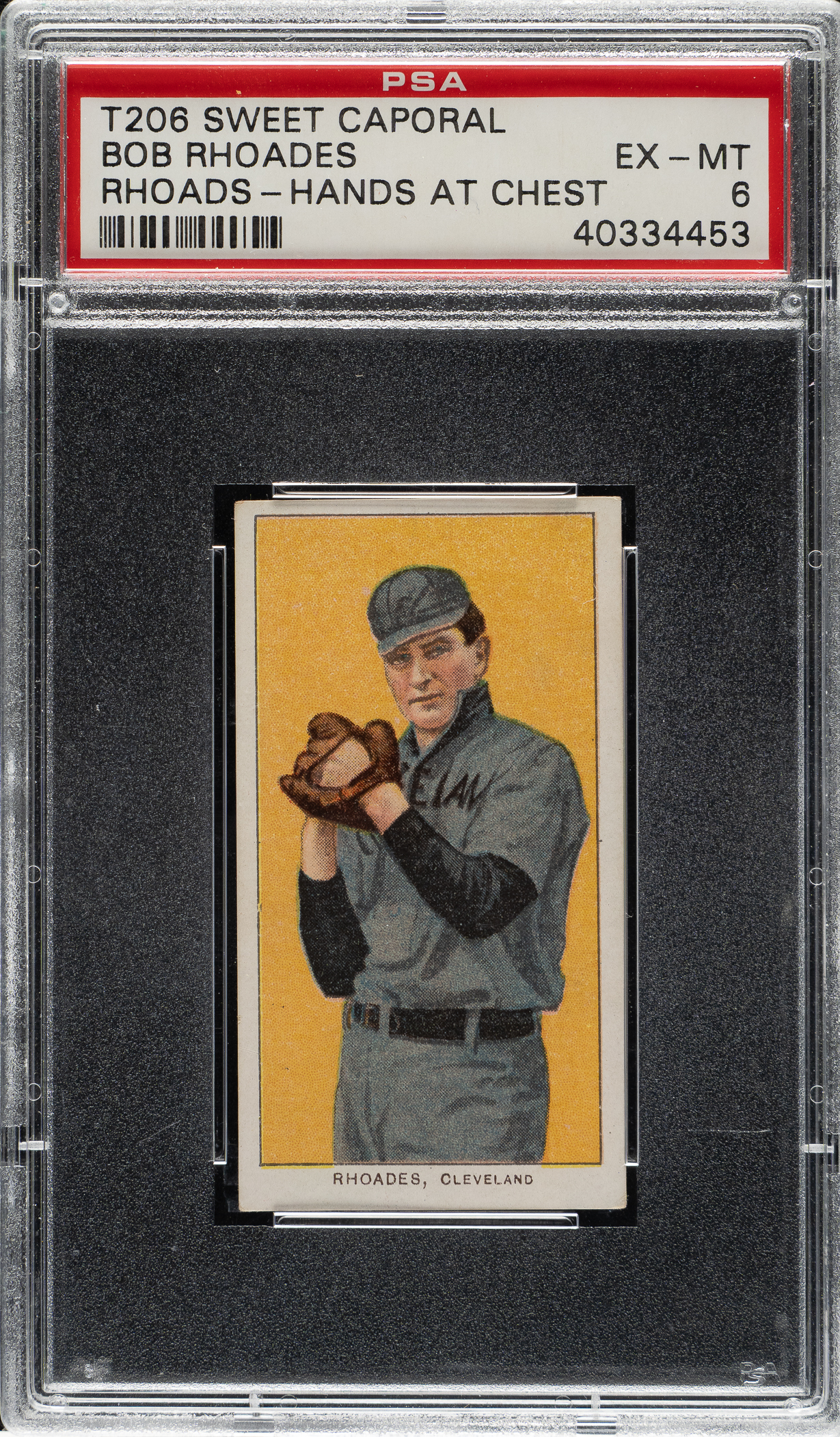 Lot # 929: 1909-1911 T206 White Border Bob Rhoades Hands at Chest PSA EX-MT 6