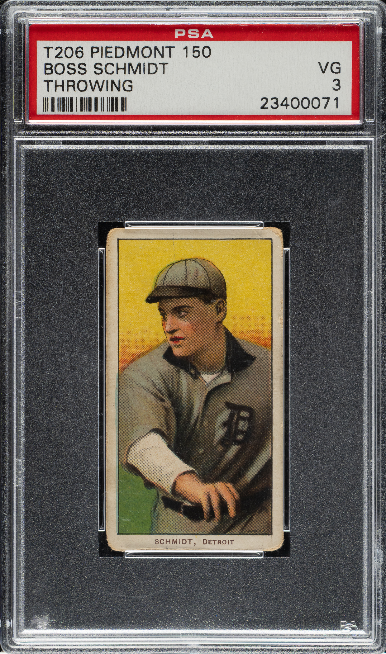 Lot # 966: 1909-1911 T206 White Border Boss Schmidt Throwing PSA VG 3