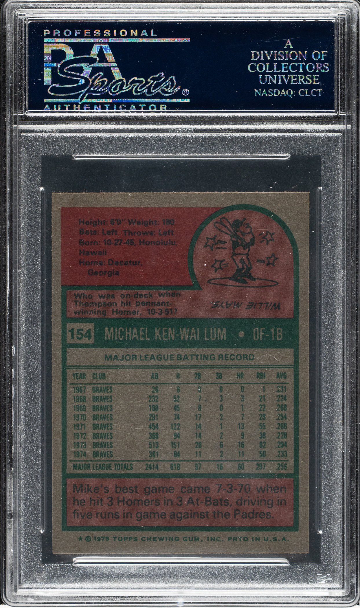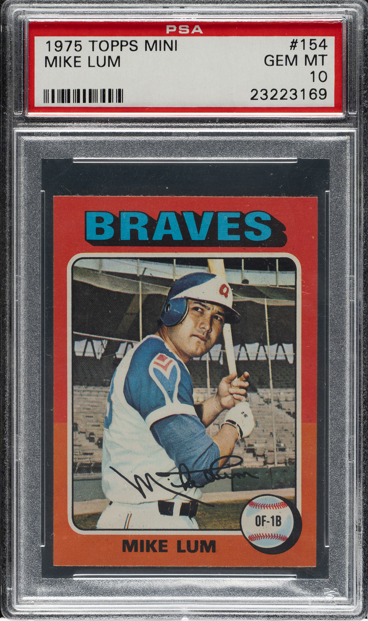 Graded GEM MINT 10 by PSA. Atlanta Braves. One of seven examples graded at this superior level by PSA!