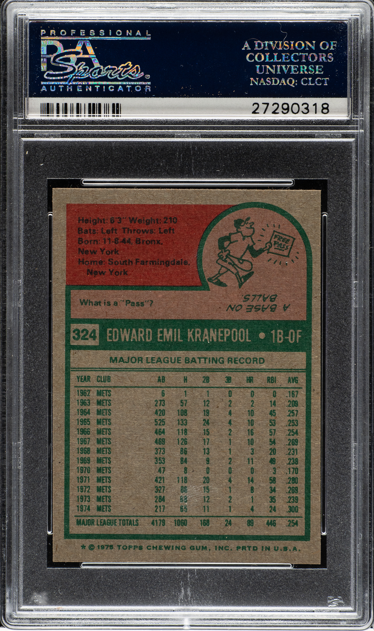 Graded GEM MINT 10 by PSA. New York Mets.