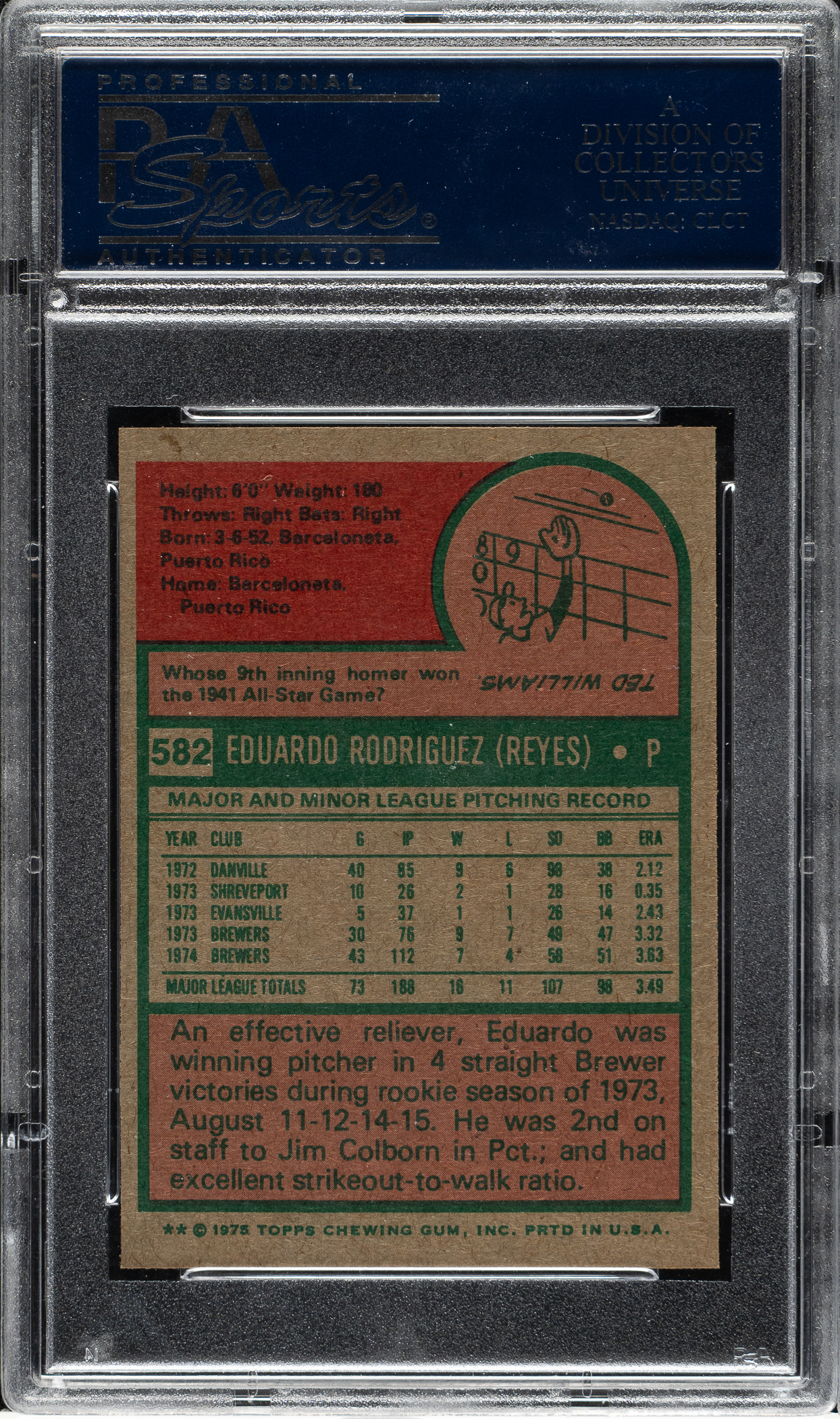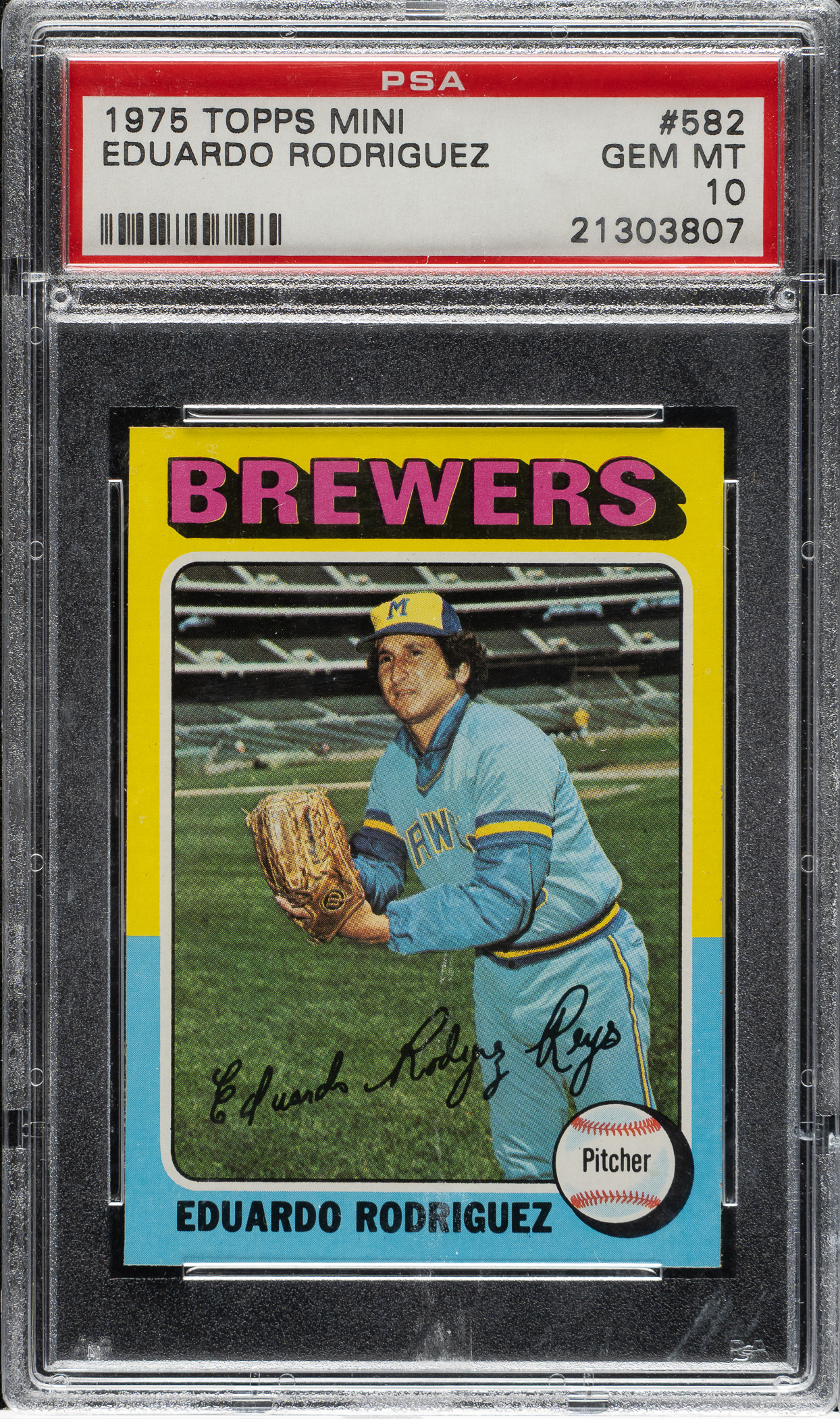 Graded GEM MINT 10 by PSA. Milwaukee Brewers. One of seven examples graded at this superior level by PSA!