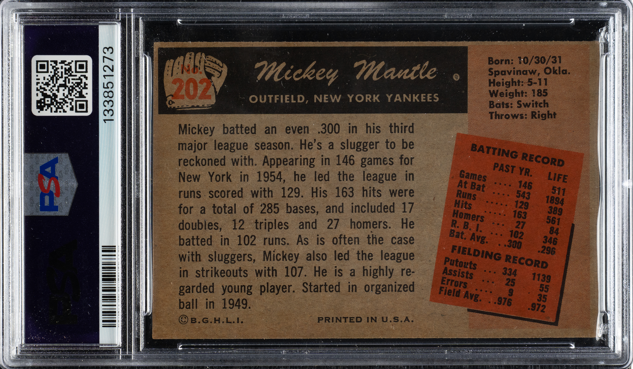 Lot # 1861: 1955 Bowman #202 Mickey Mantle PSA VG-EX 4