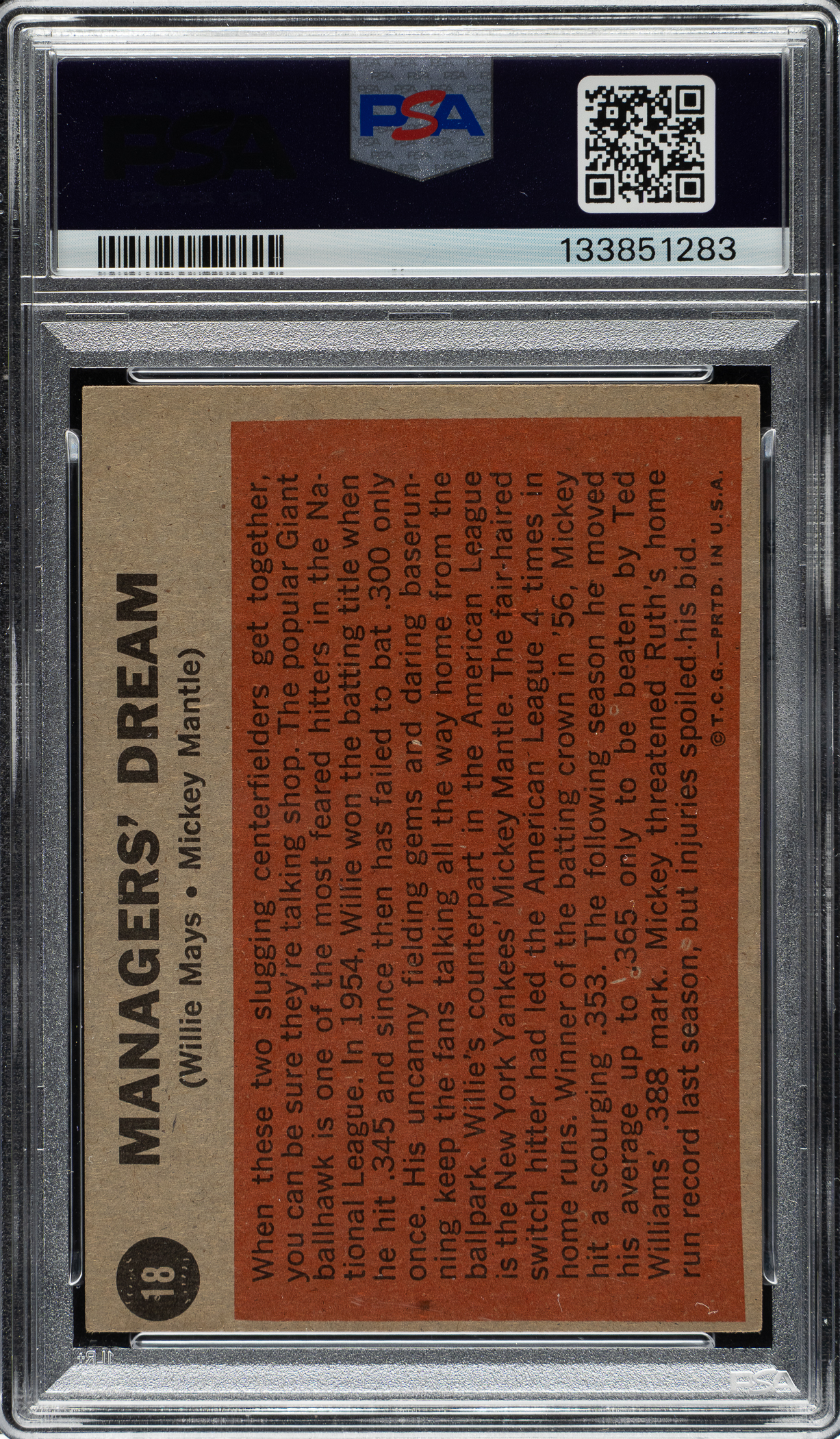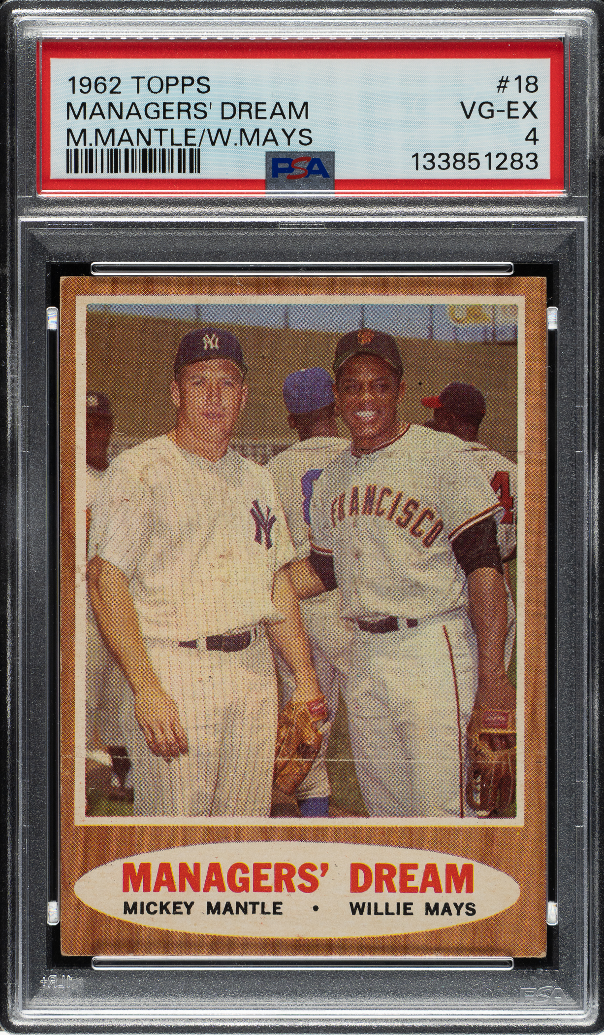 1962 Topps #18 Managers' Dream with Mickey Mantle and Willie Mays PSA VG-EX 4