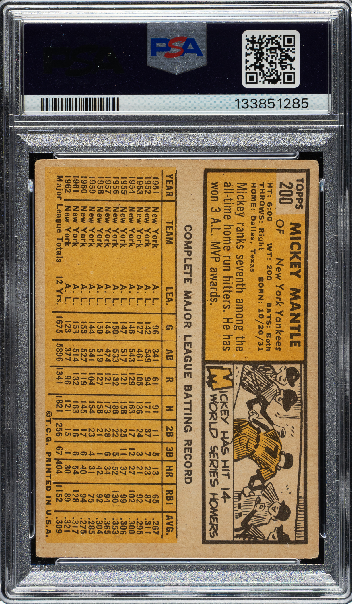 1963 Topps #200 Mickey Mantle PSA EX-MT 6