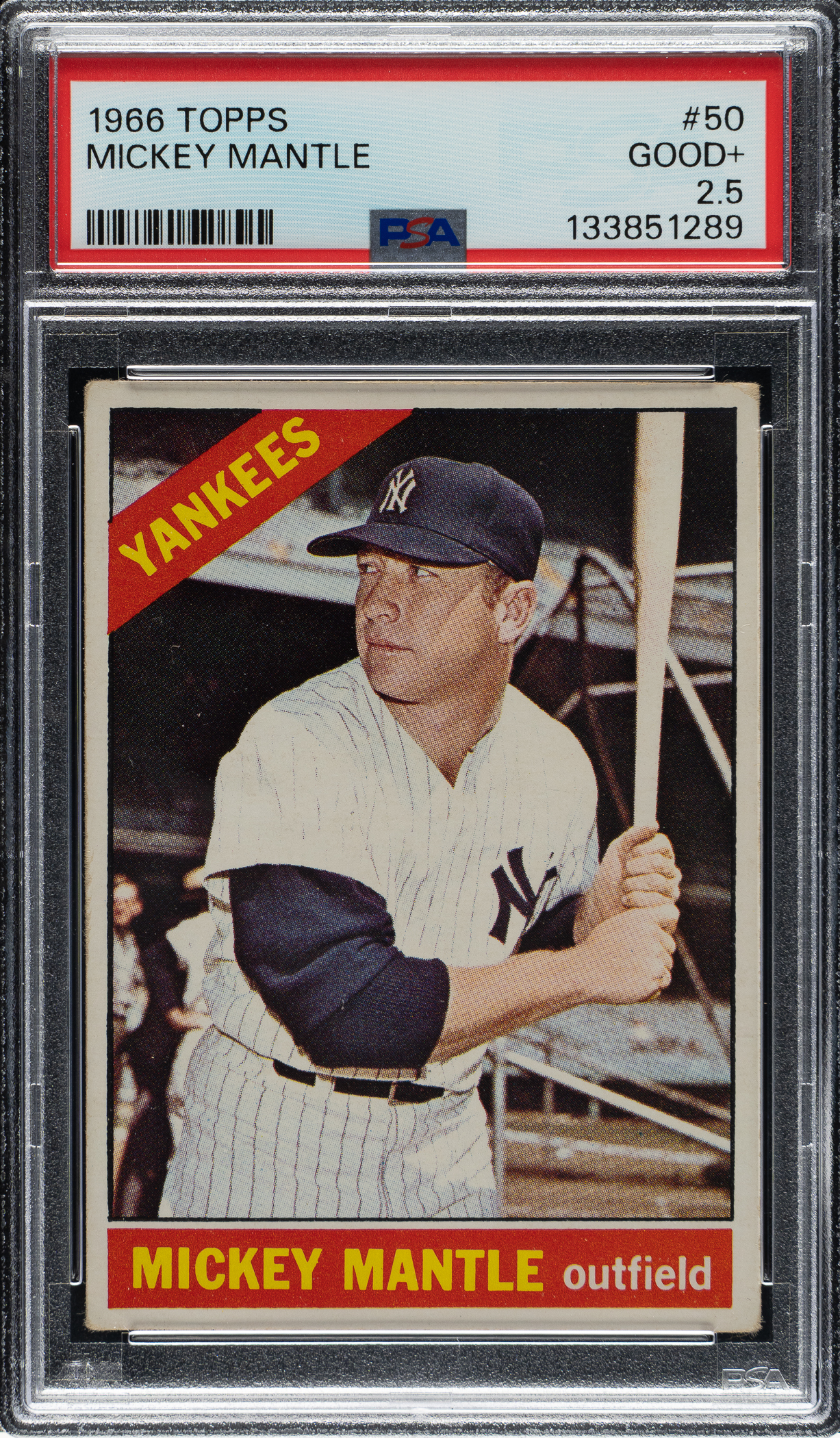 Lot # 2080: 1966 Topps #50 Mickey Mantle PSA GOOD+ 2.5