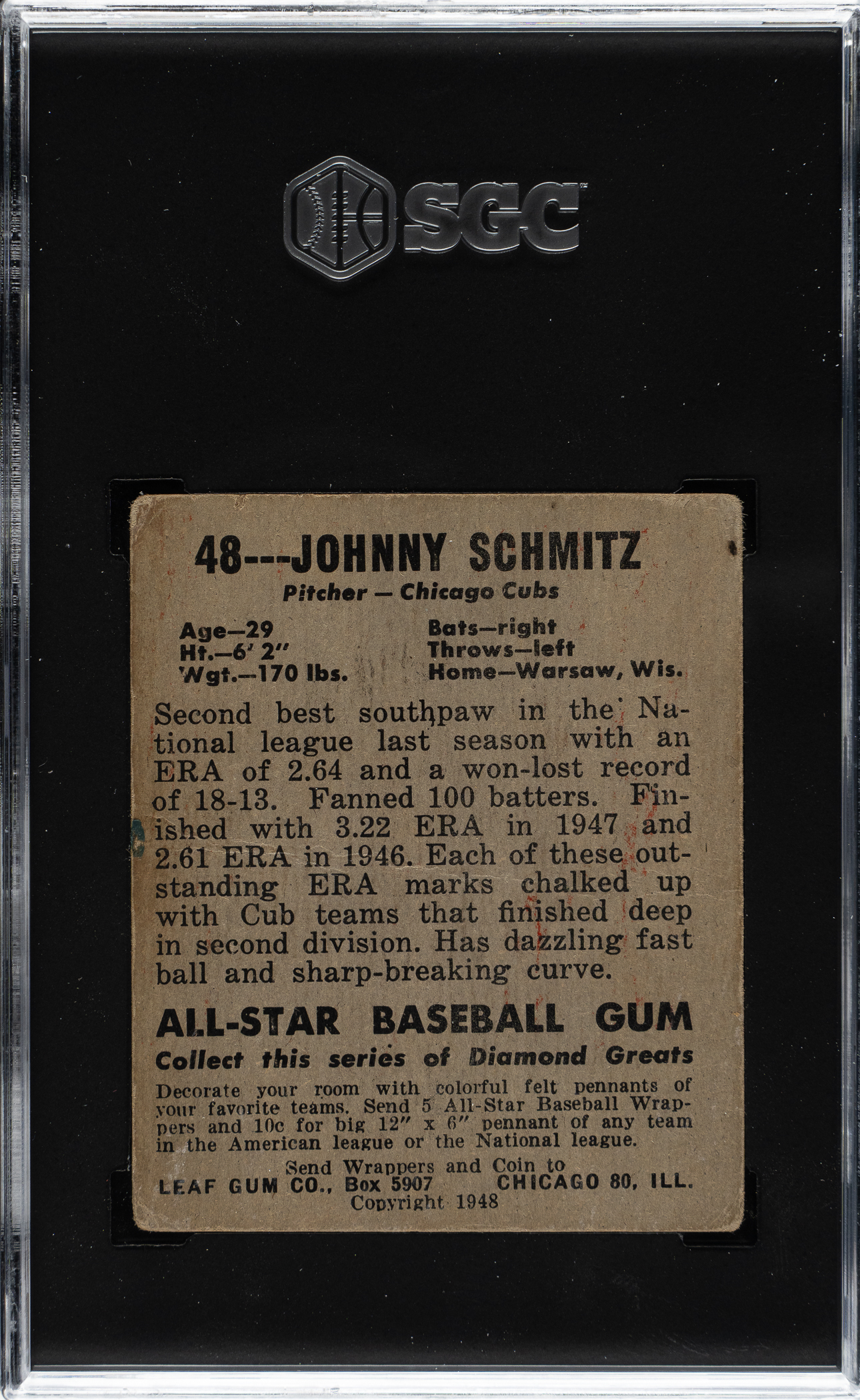 1948-1949 Leaf #32 Warren Spahn Rookie SGC VG 3