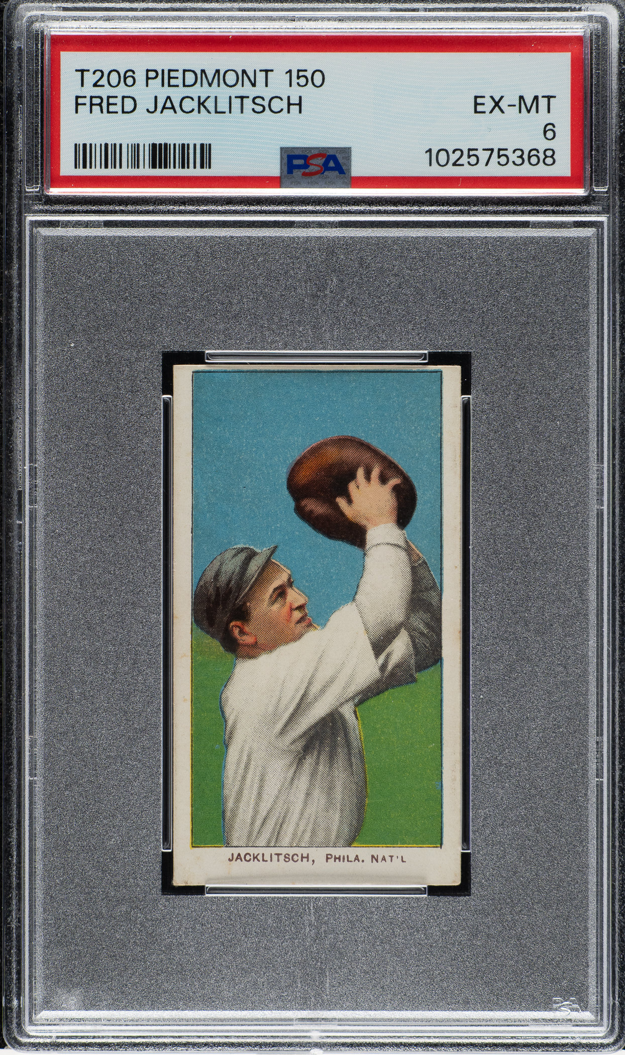 Lot # 609: 1909-1911 T206 White Border Fred Jacklitsch PSA EX-MT 6