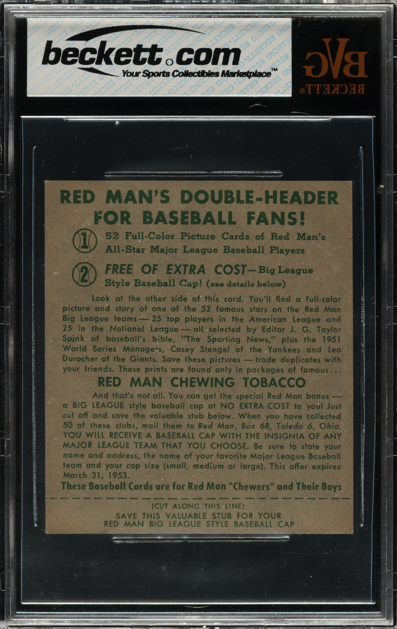 Graded EX-MT+ 6.5 by BVG. Philadelphia Phillies Hall of Famer Robin Roberts.