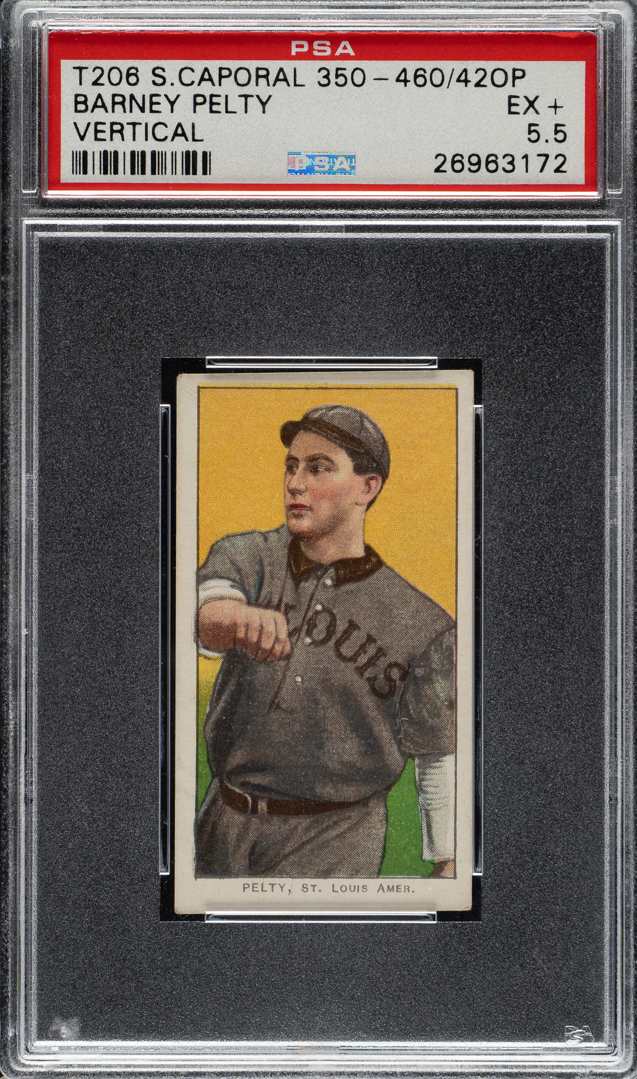 Lot # 891: 1909-1911 T206 White Border Barney Pelty Vertical PSA EX+ 5.5
