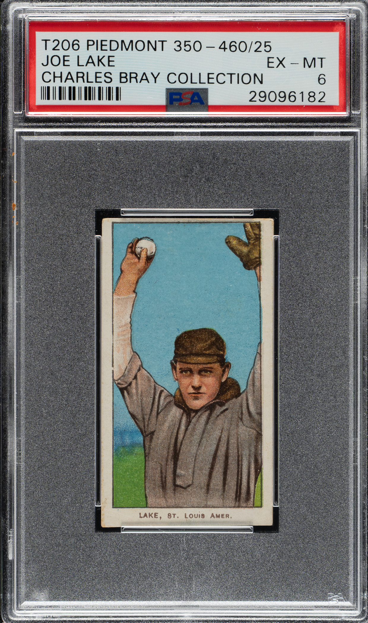 Lot # 680: 1909-1911 T206 White Border Joe Lake St. Louis Ball in Hand PSA EX-MT 6