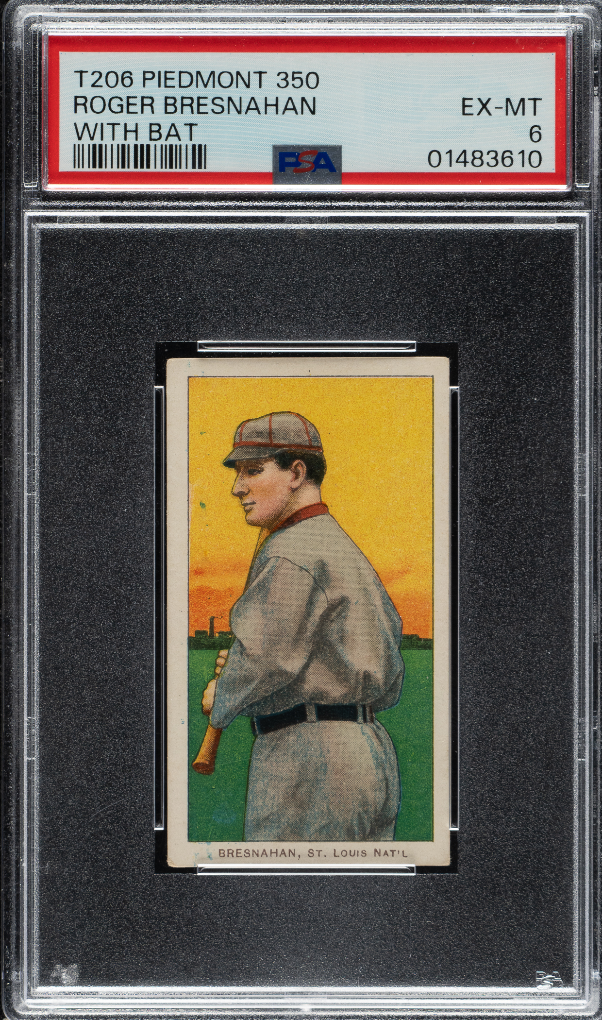 Lot # 285: 1909-1911 T206 White Border Roger Bresnahan with Bat PSA EX-MT 6