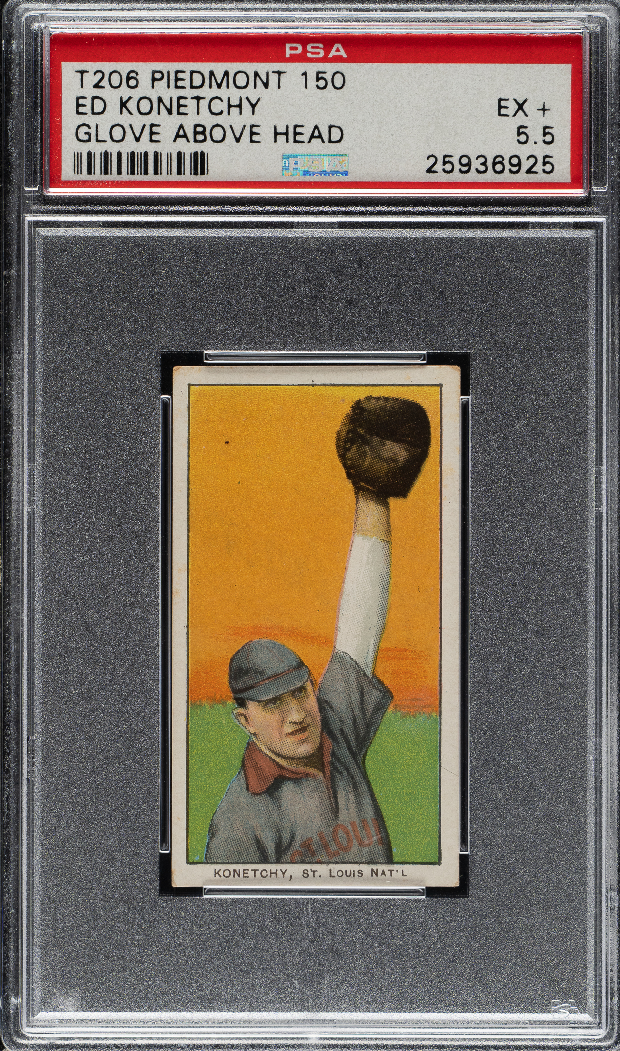 Lot # 663: 1909-1911 T206 White Border Ed Konetchy Glove Above Head PSA EX+ 5.5