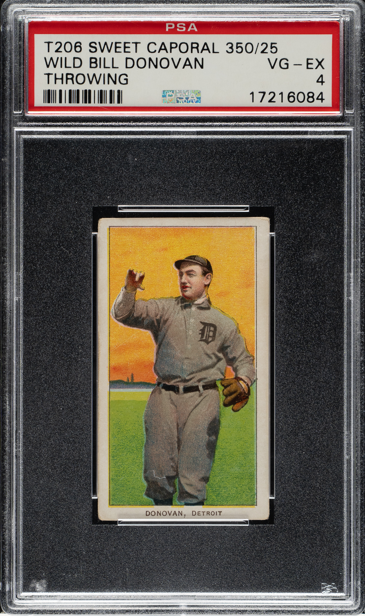 Lot # 439: 1909-1911 T206 White Border Wild Bill Donovan Throwing PSA VG-EX 4