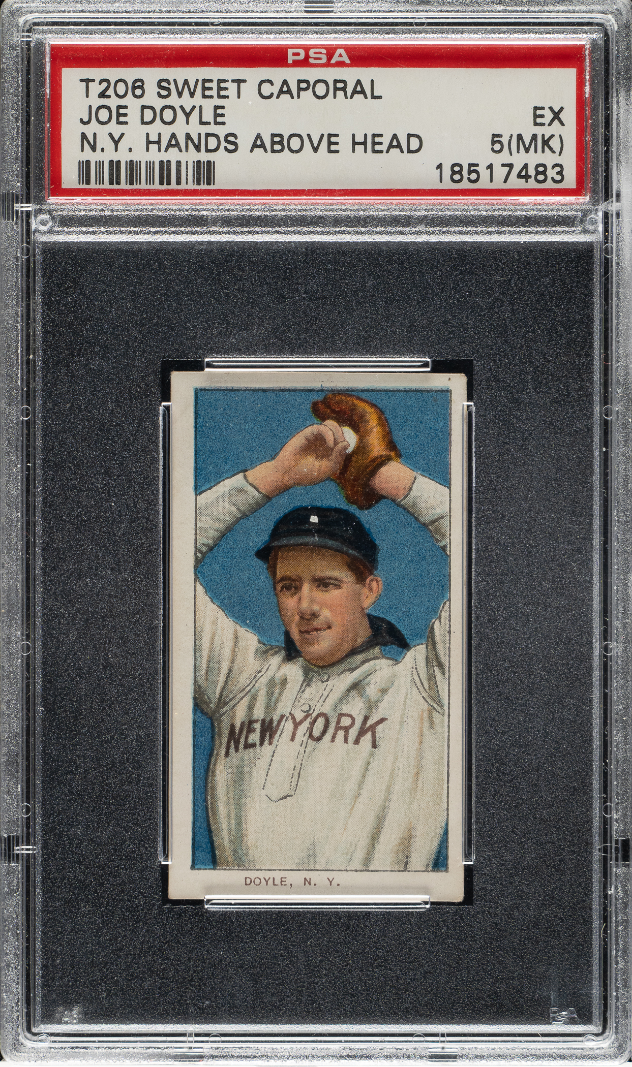 Lot # 463: 1909-1911 T206 White Border Joe Doyle N.Y. Hands Above Head PSA EX 5 (MK)