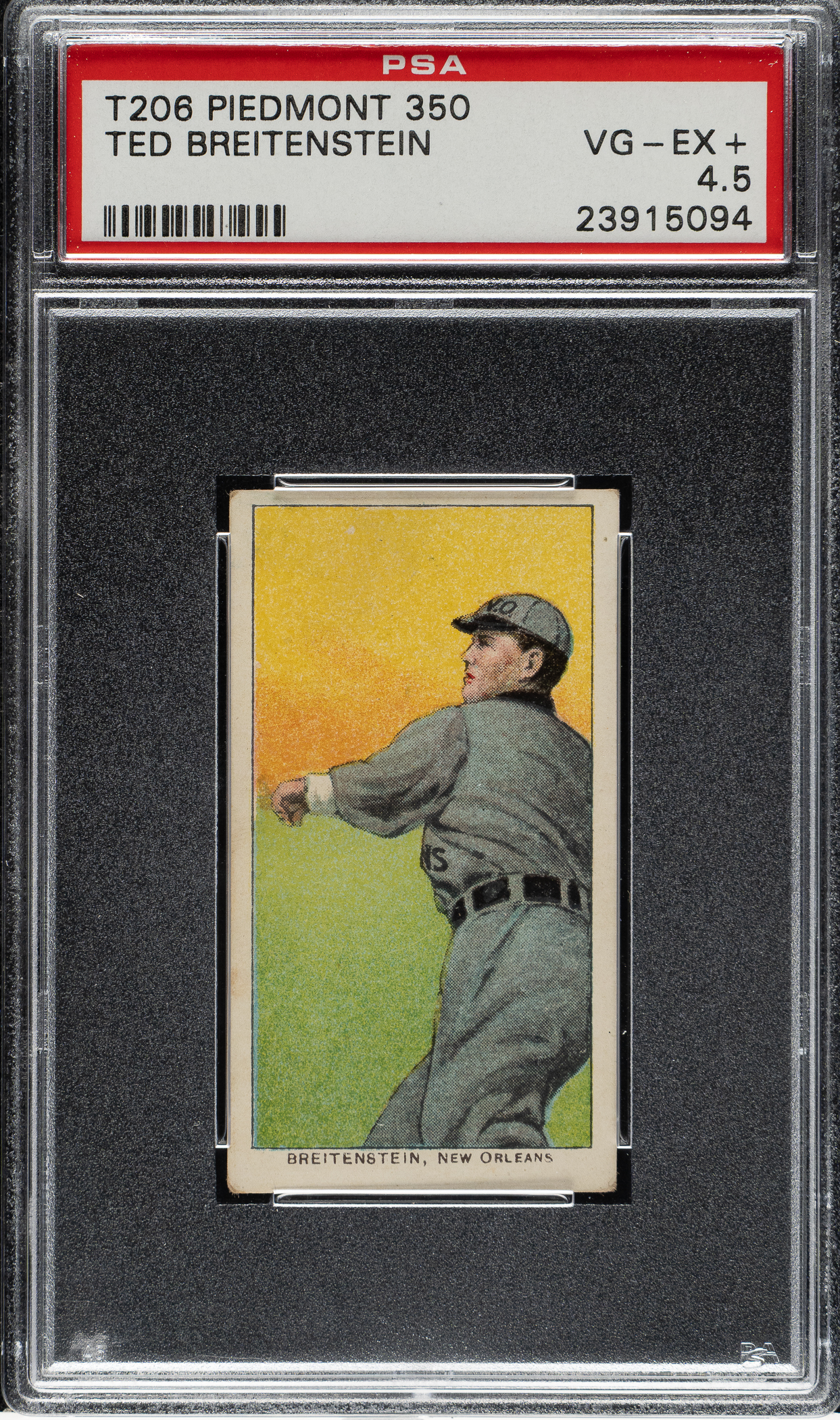 Lot # 282: 1909-1911 T206 White Border Ted Breitenstein Southern Leaguer PSA VG-EX+ 4.5