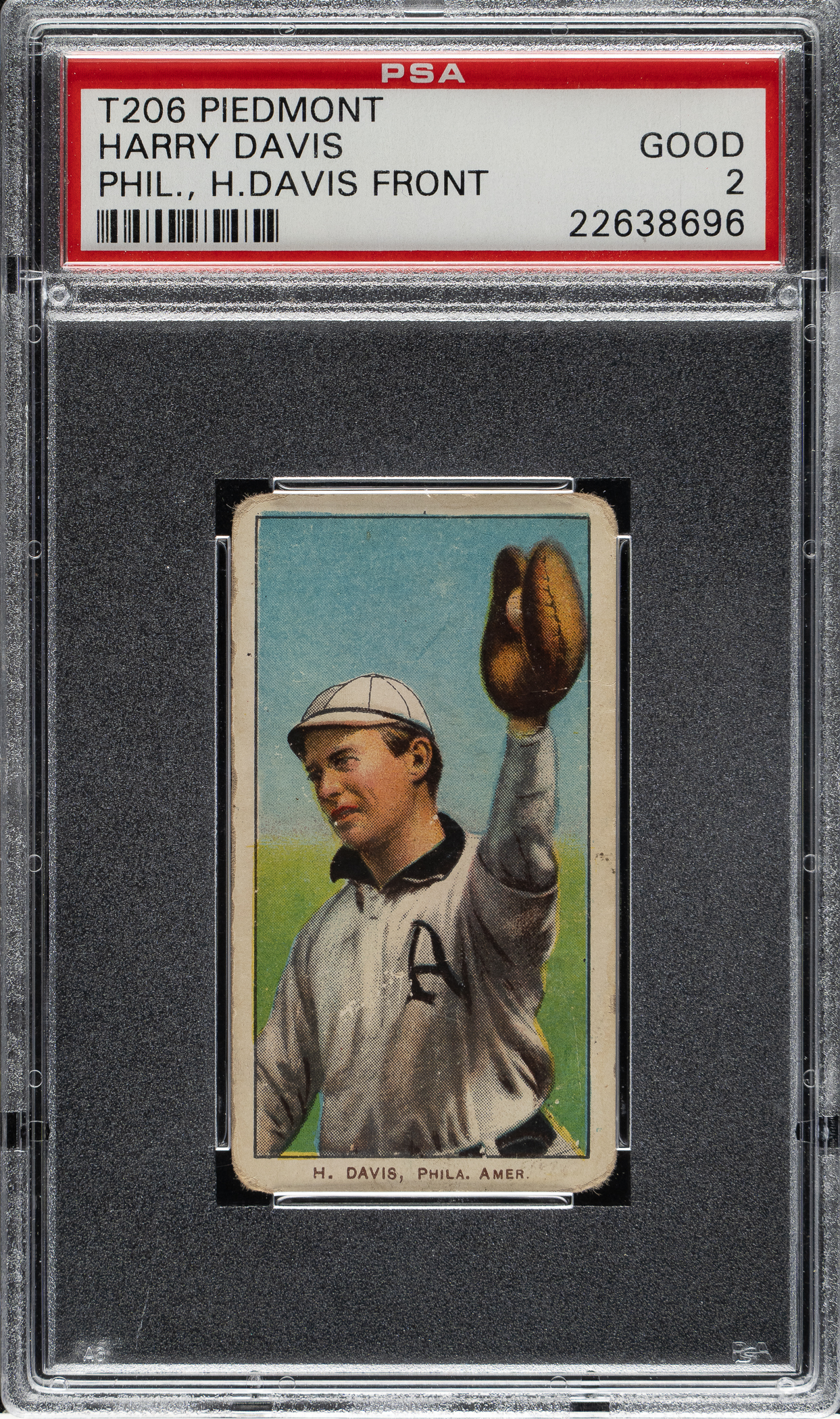 Lot # 417: 1909-1911 T206 White Border Harry Davis (H. Davis on Front) PSA GOOD 2
