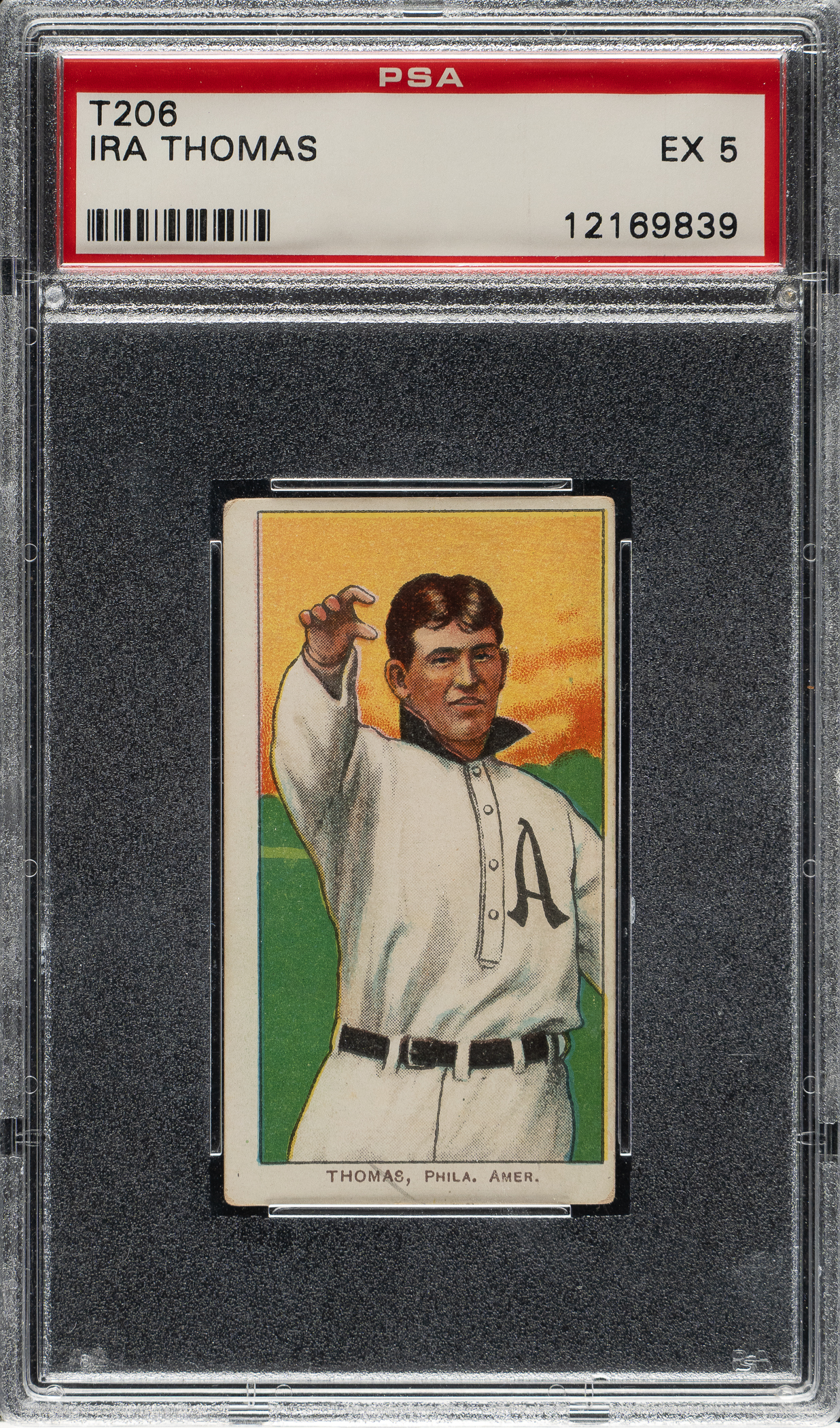 Lot # 1083: 1909-1911 T206 White Border Ira Thomas PSA EX 5