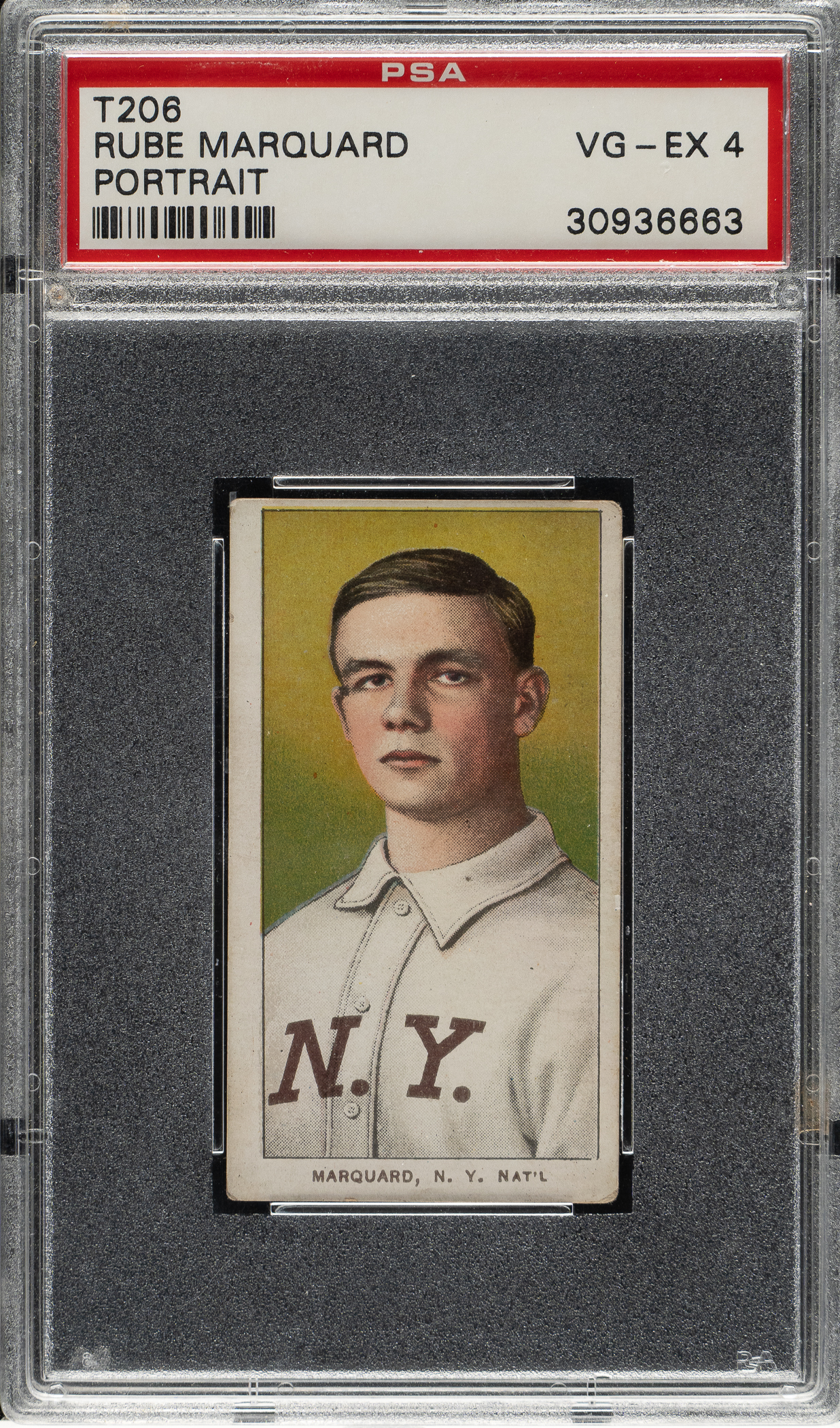 Graded VG-EX 4 by PSA. New York Giants Hall of Famer Rube Marquard.