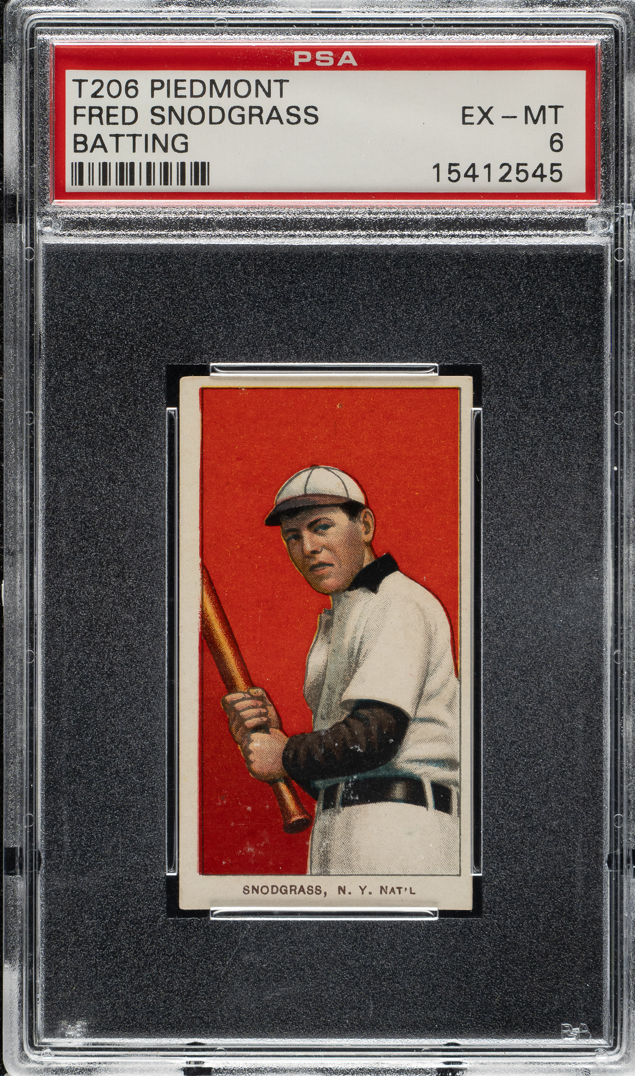 Lot # 1018: 1909-1911 T206 White Border Fred Snodgrass Batting PSA EX-MT 6