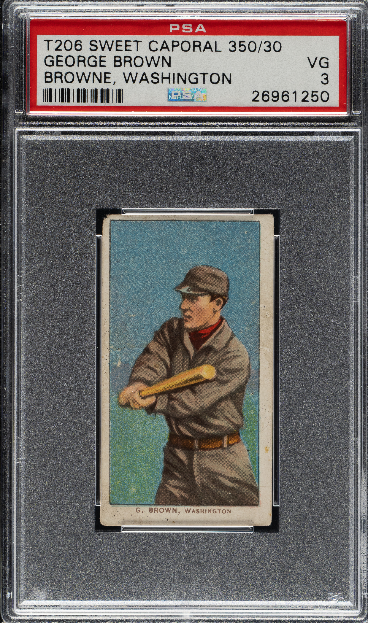 Lot # 294: 1909-1911 T206 White Border George Brown Washington PSA VG 3