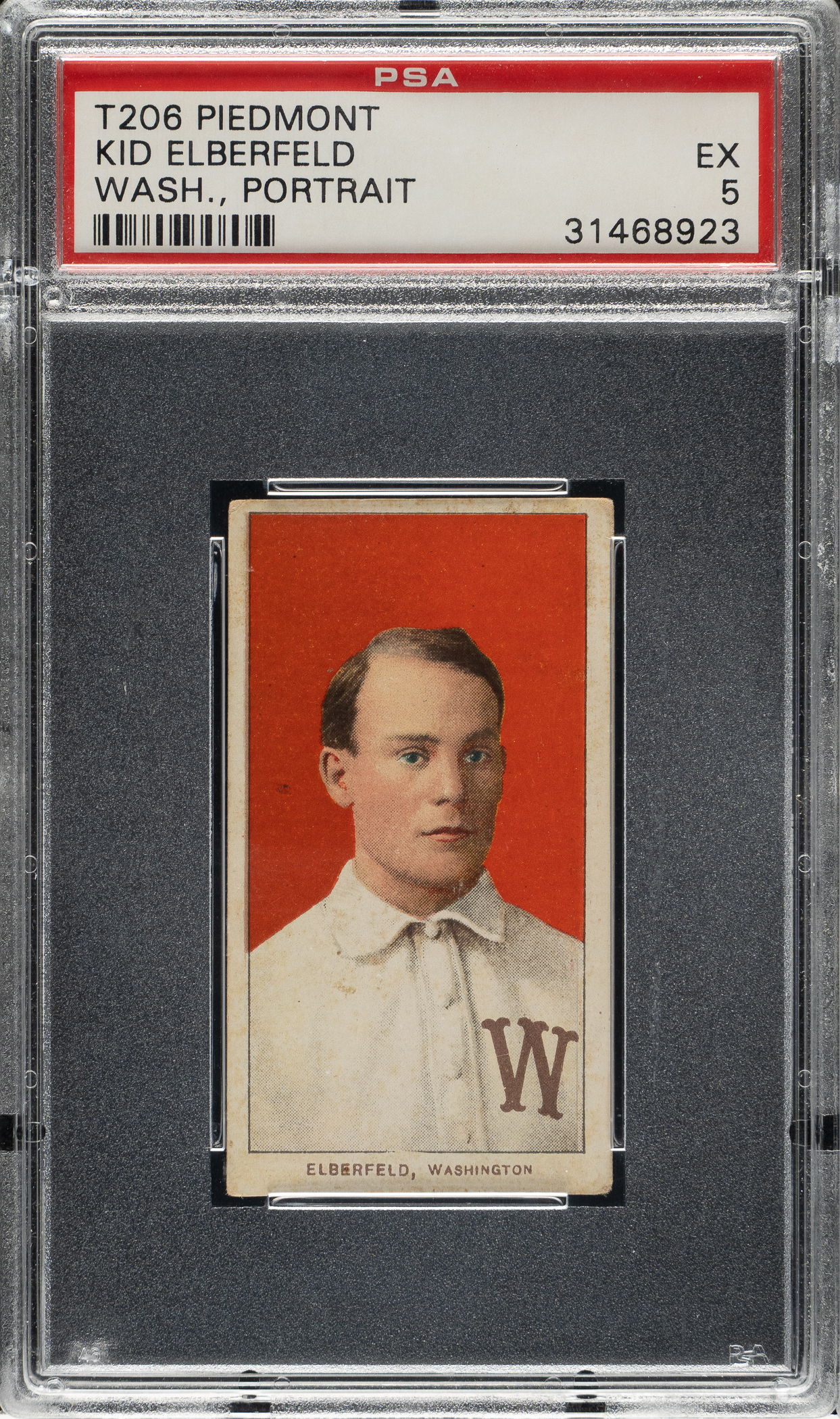 Lot # 485: 1909-1911 T206 White Border Kid Elberfeld Washington Portrait PSA EX 5