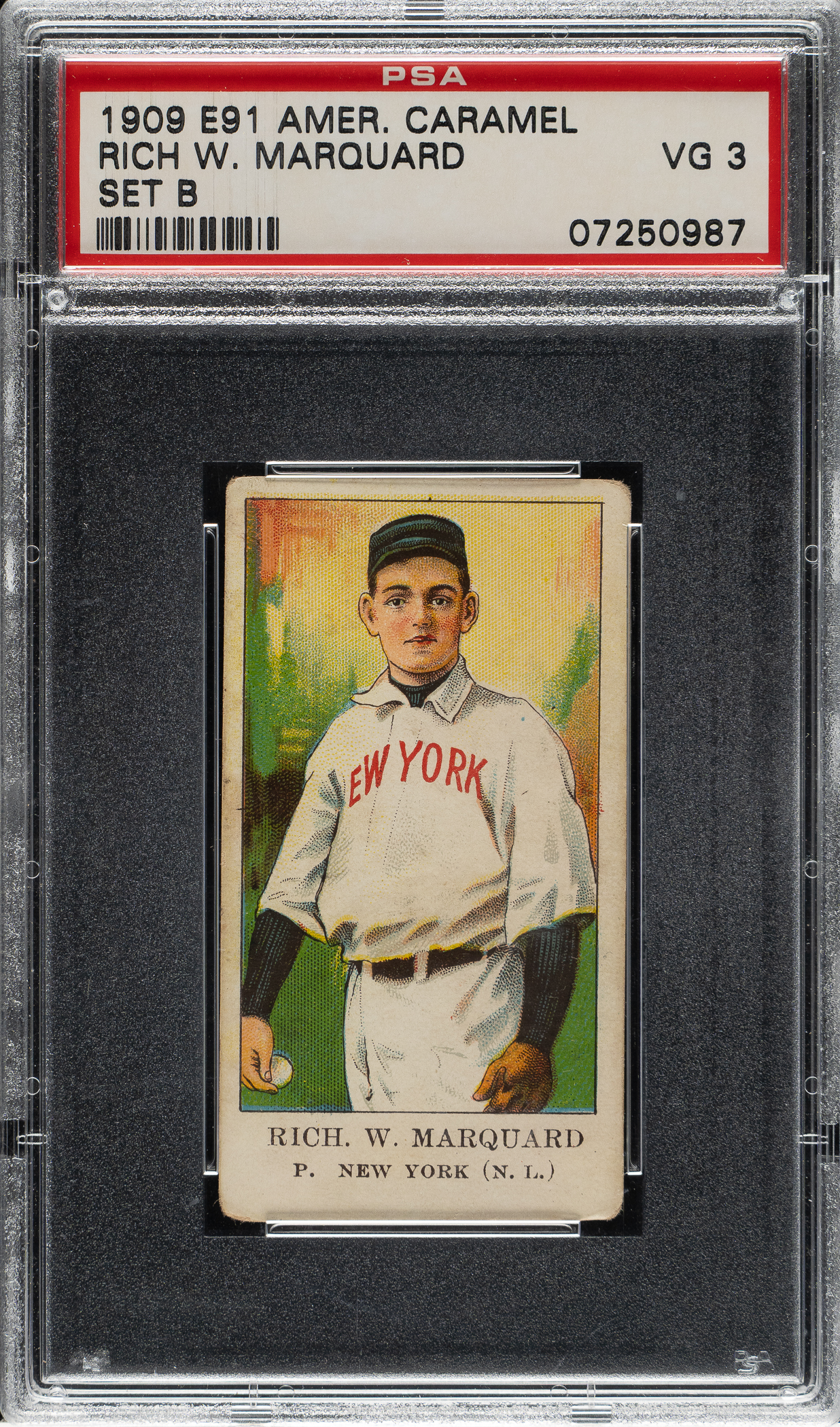 Graded VG 3 by PSA. New York Giants Hall of Famer Rube Marquard.