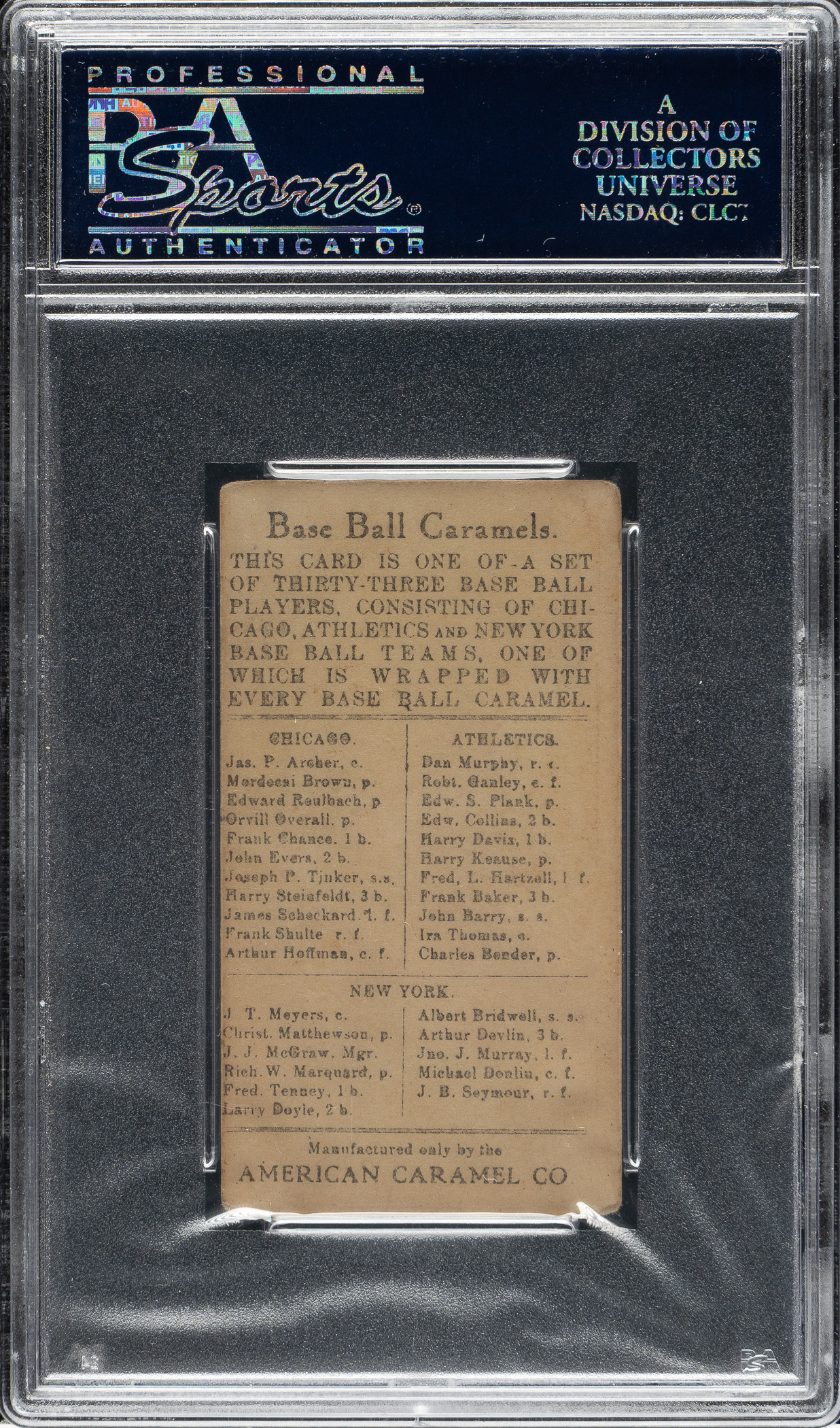 Graded VG+ 3.5 by PSA. Philadelphia Athletics.