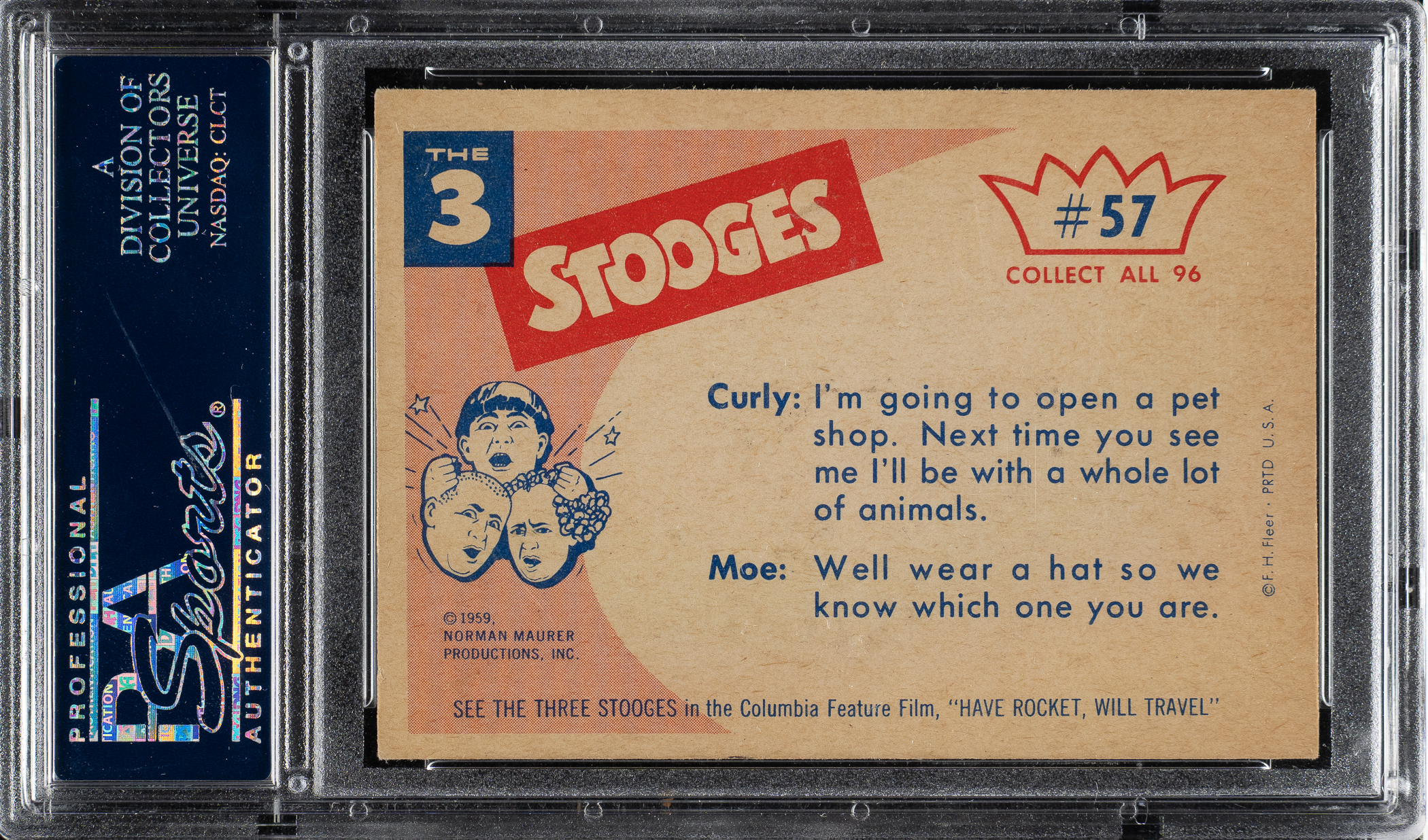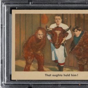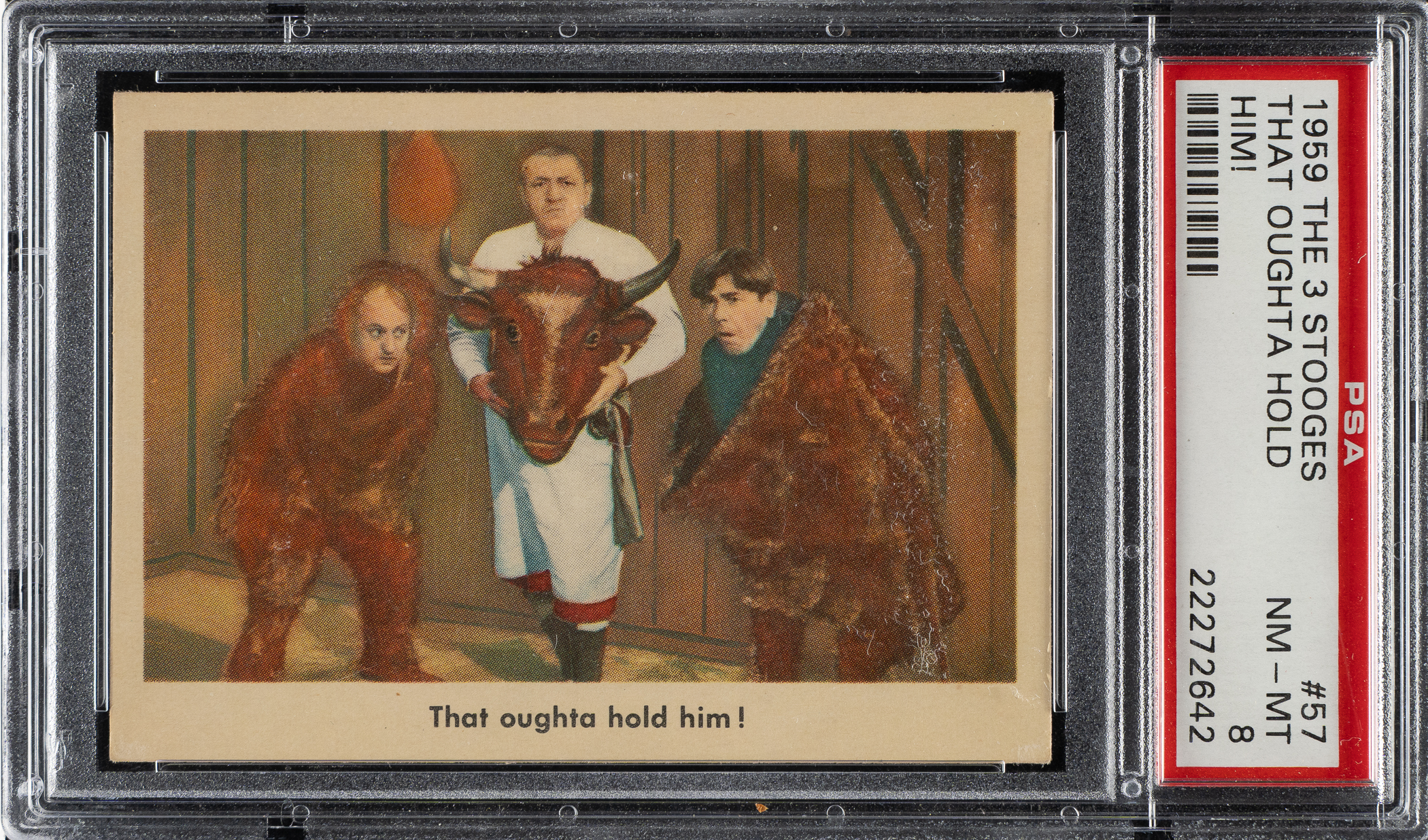Lot # 2674: 1959 Fleer "The Three Stooges" #57 That Oughta Hold Him! PSA NM-MT 8