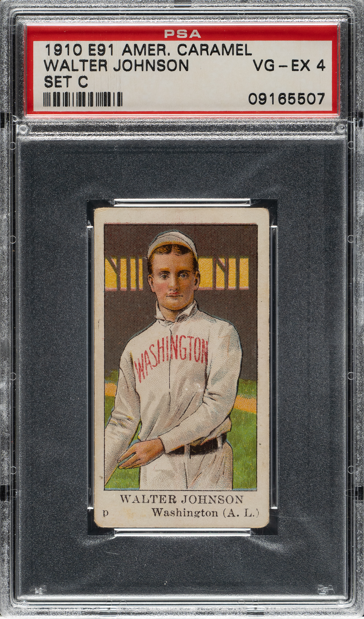 Graded VG-EX 4 by PSA. Washington Senators Hall of Famer Walter Johnson.