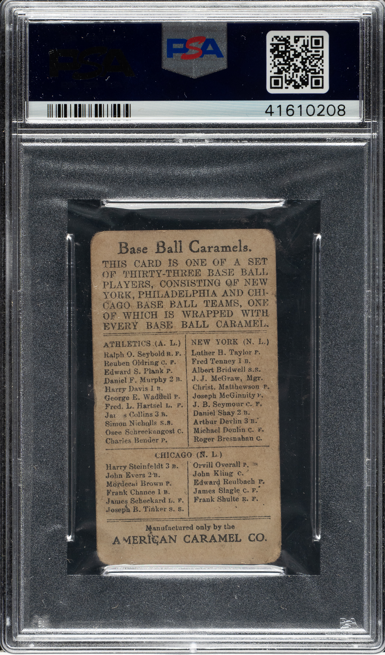 1909-1911 E91-B American Caramel Johnny Evers PSA VG+ 3.5
