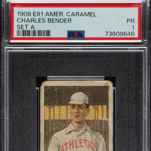 Graded POOR 1 by PSA. Philadelphia Athletics Hall of Famer Chief Bender.