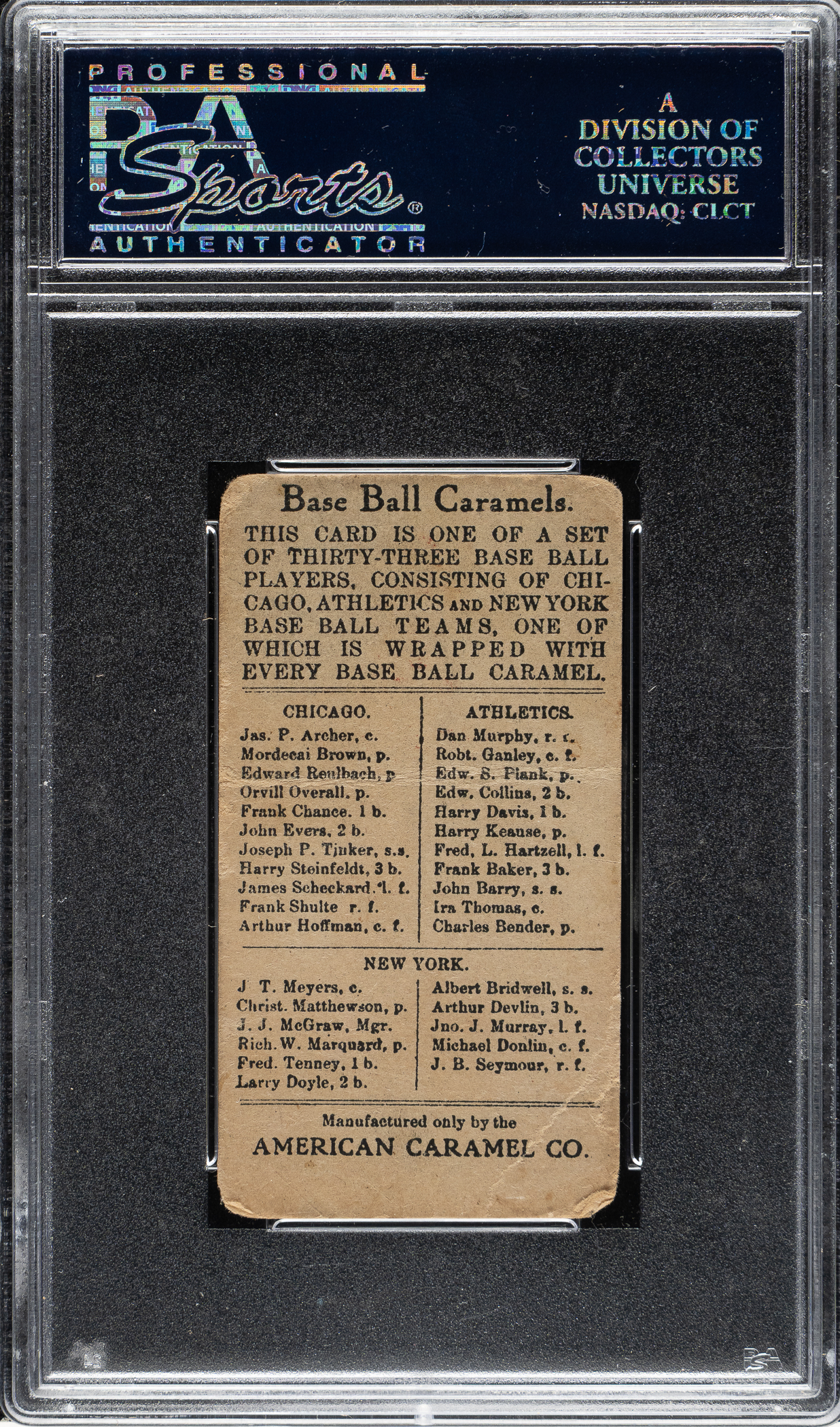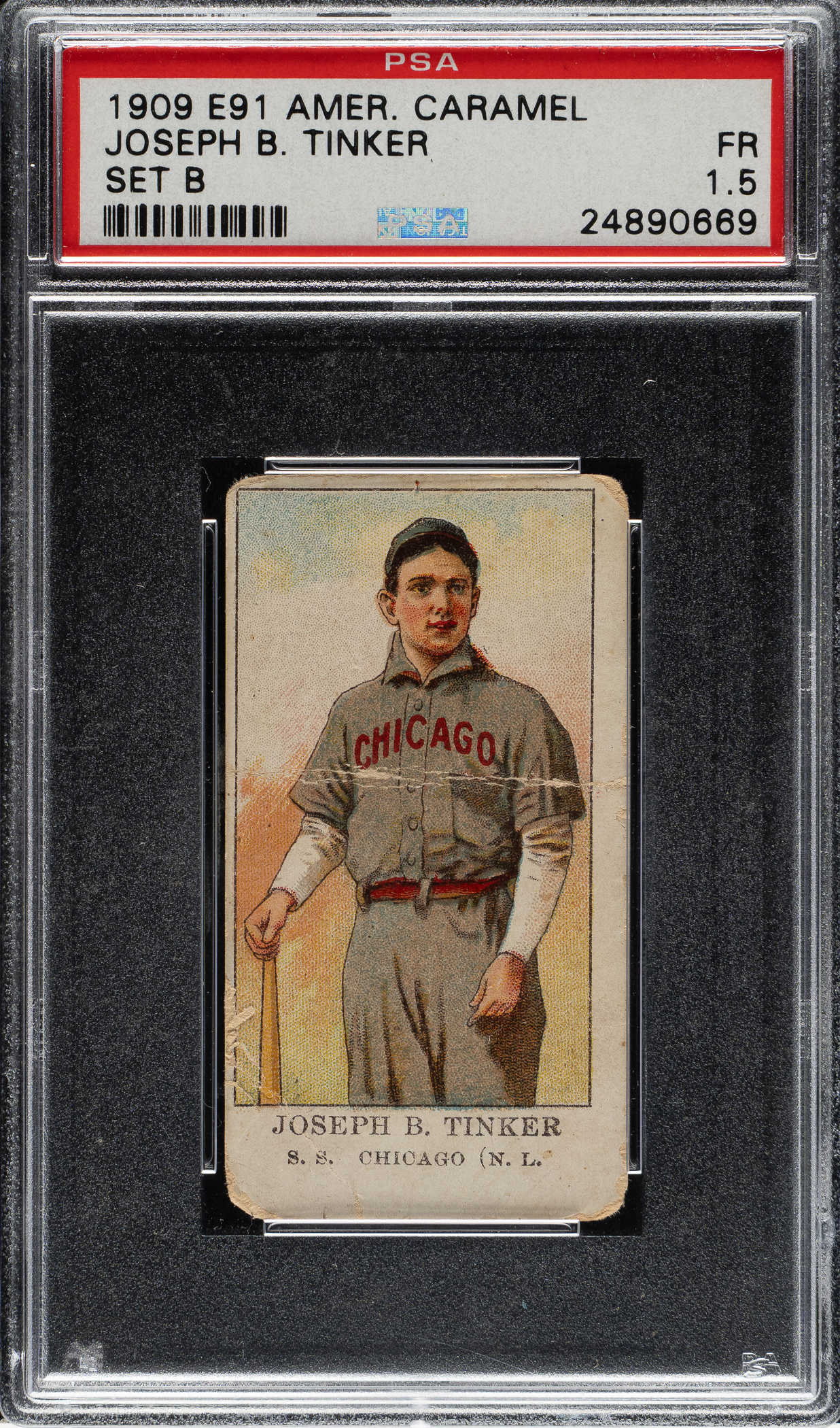 Graded FAIR 1.5 by PSA. Chicago Cubs Hall of Famer Joe Tinker.