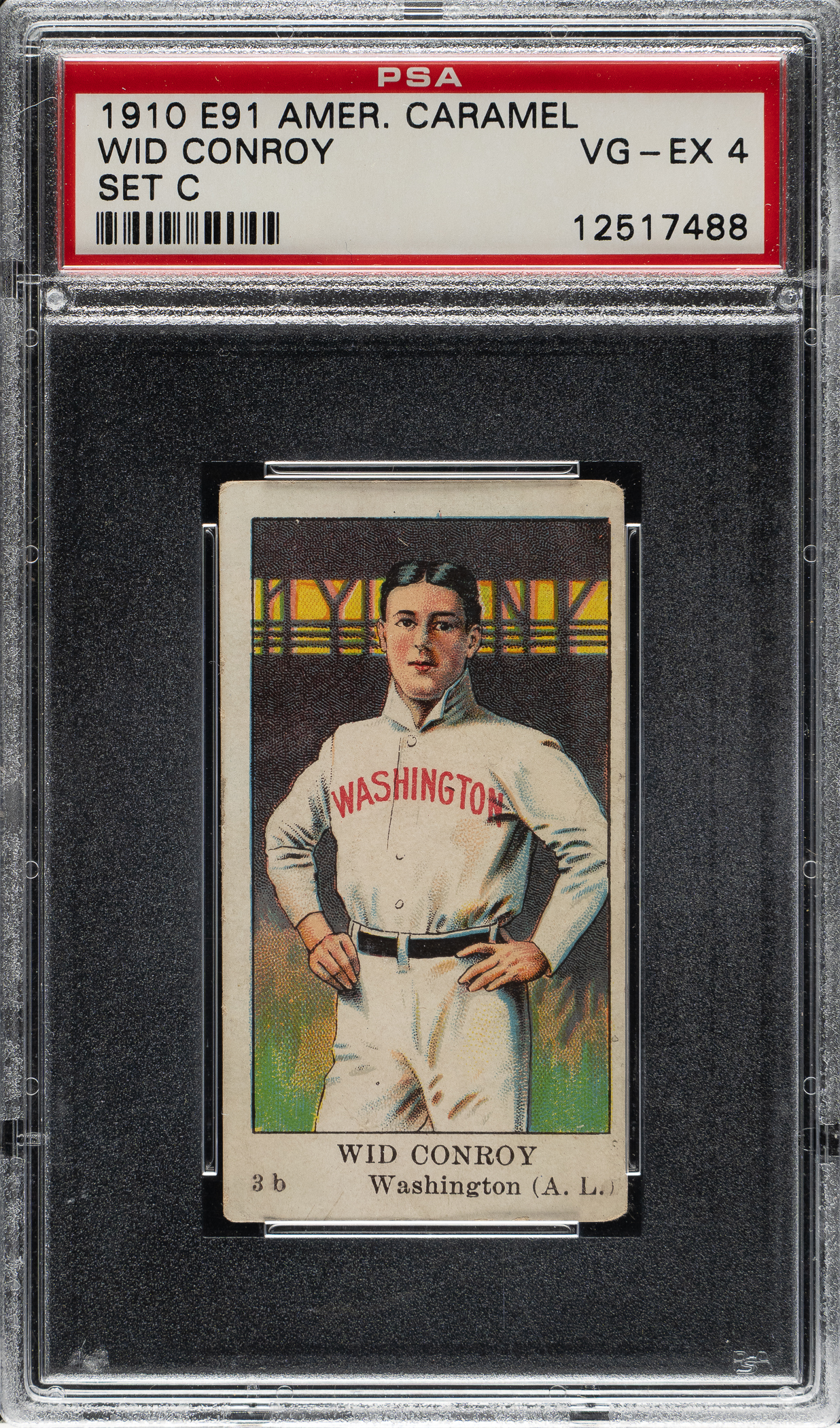 Lot # 187: 1909-1911 E91-C American Caramel Wid Conroy PSA VG-EX 4