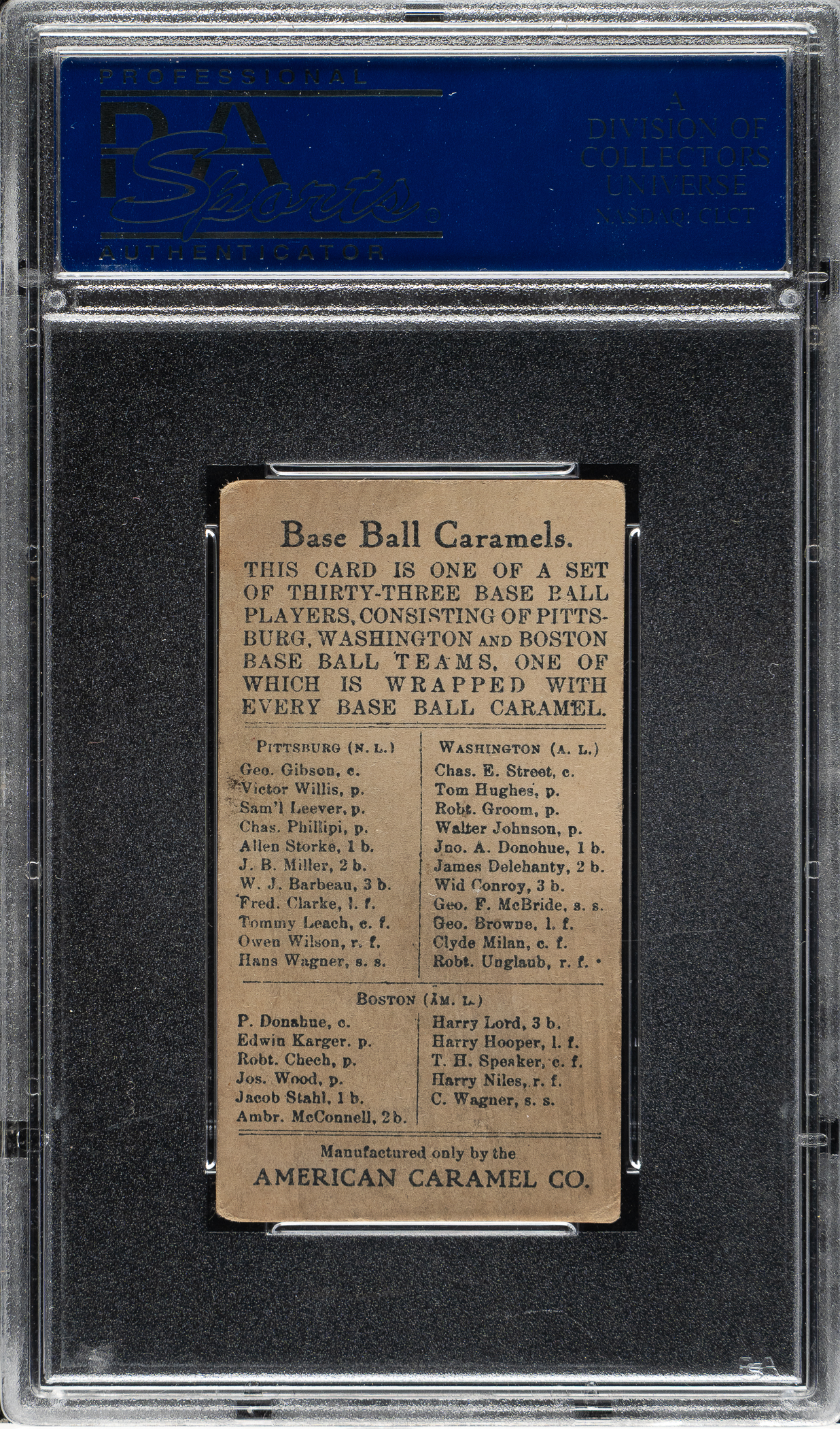 Graded VG-EX 4 by PSA. Washington Senators.