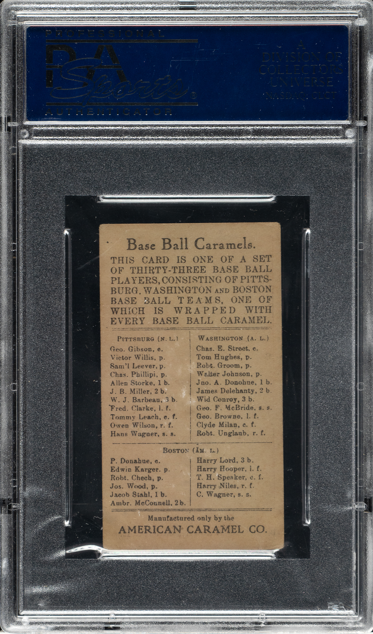 Graded VG-EX 4 by PSA. Washington Senators.