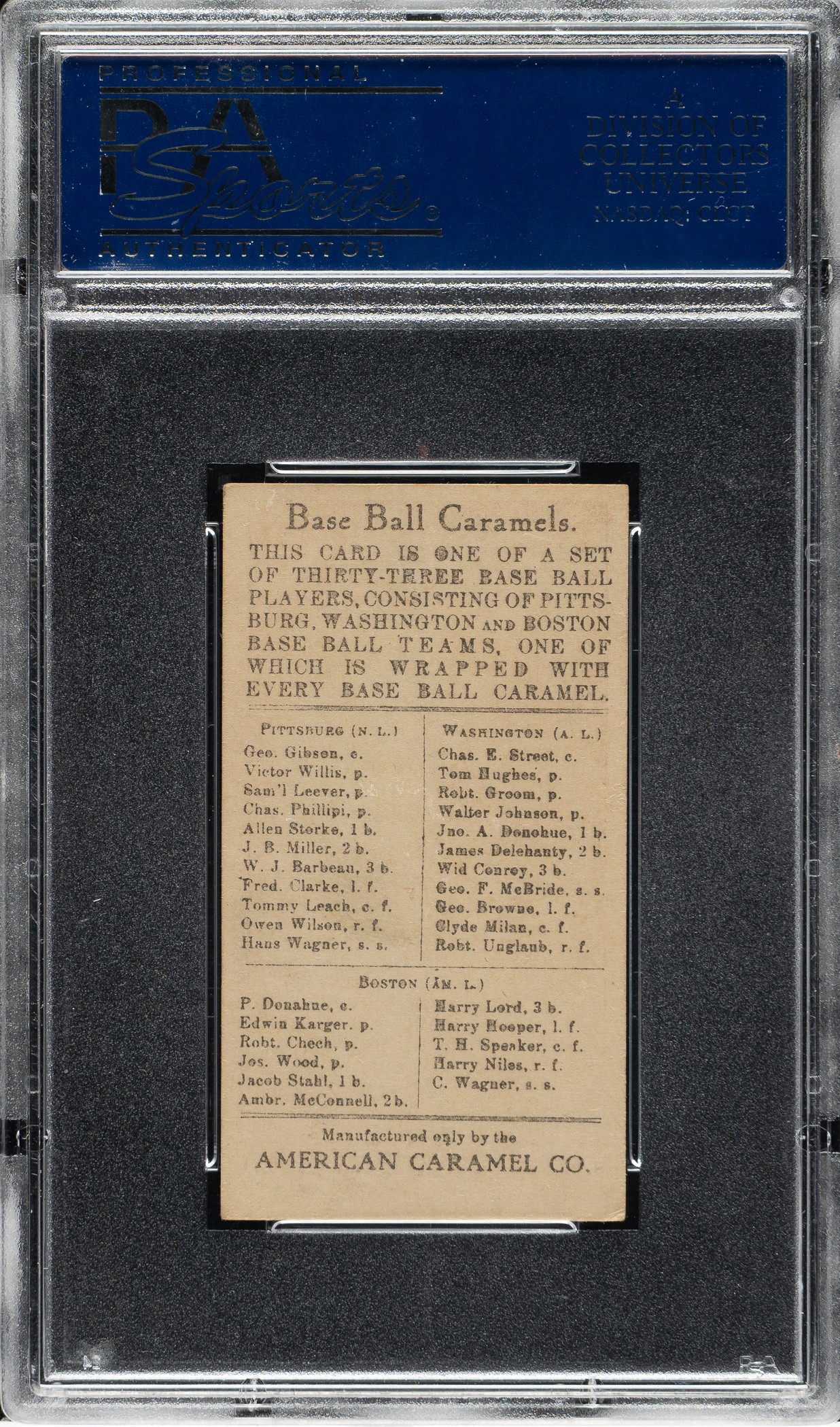 Graded EX 5 by PSA. Washington Senators.