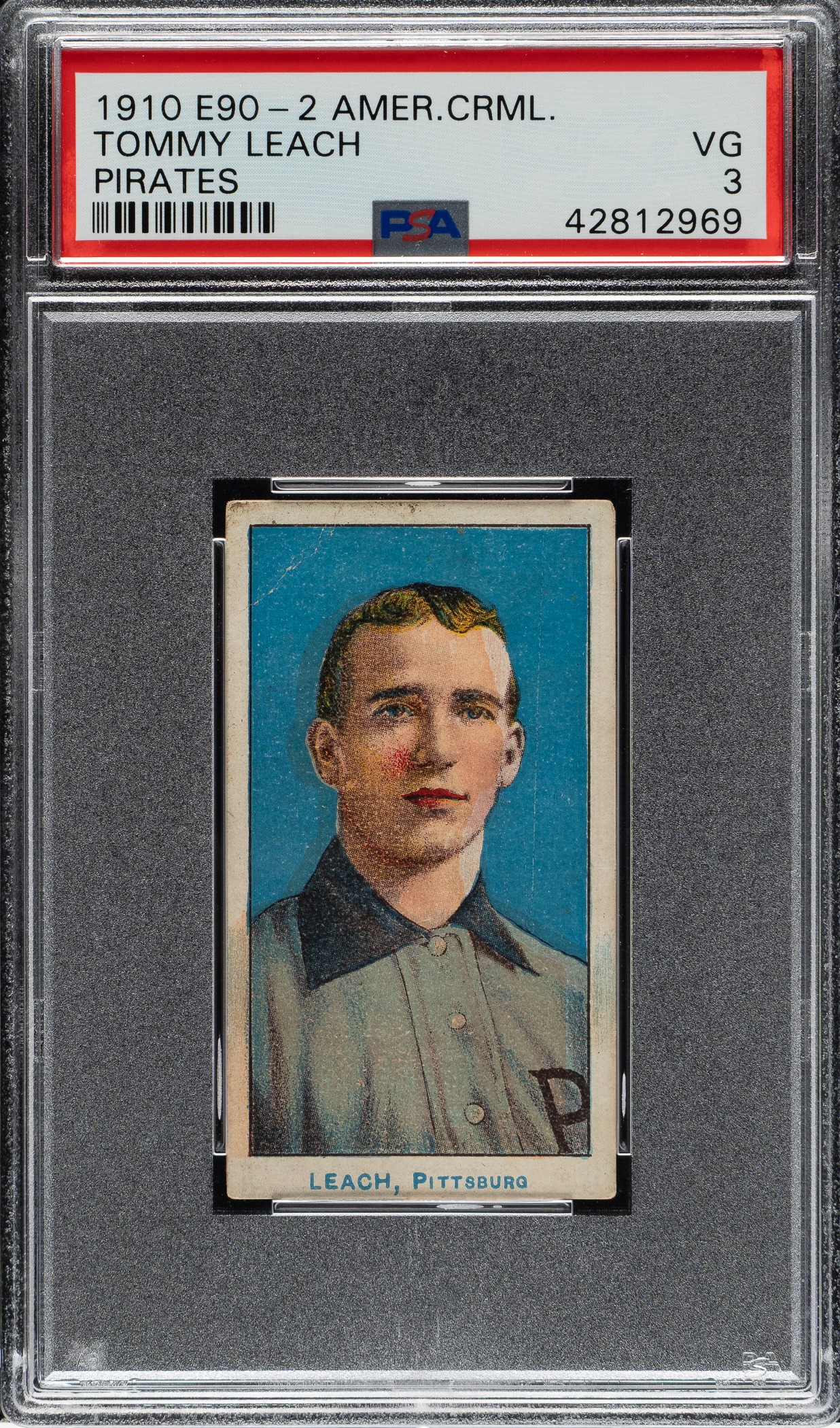 Lot # 1180: 1910 E90-2 American Caramel Tommy Leach PSA VG 3