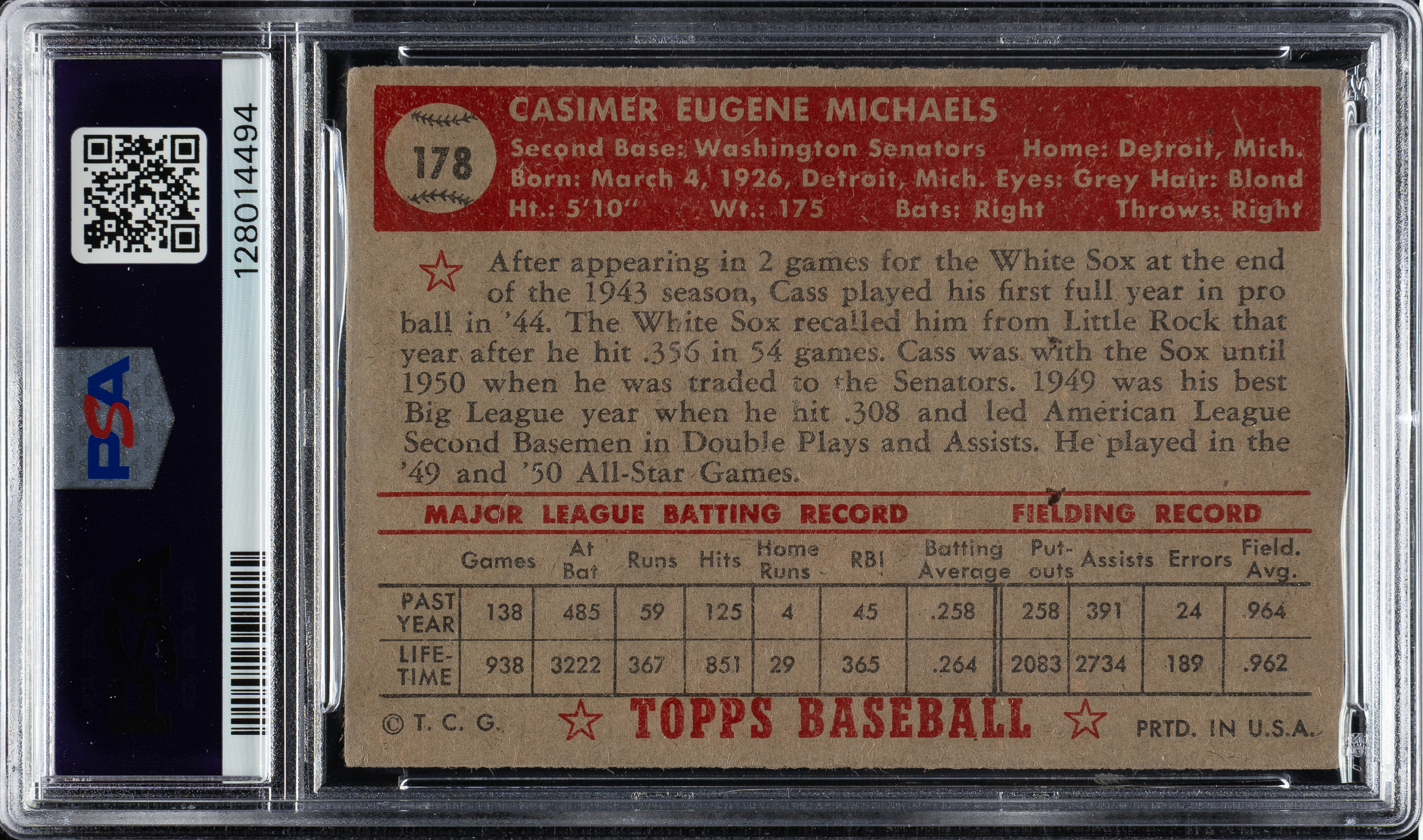 1952 Topps #148 Johnny Klippstein PSA VG-EX 4 - "Canadian" Gray Back