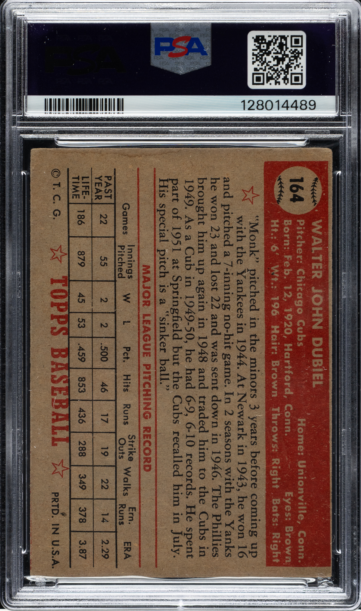 Graded VG+ 3.5 by PSA. Chicago Cubs.