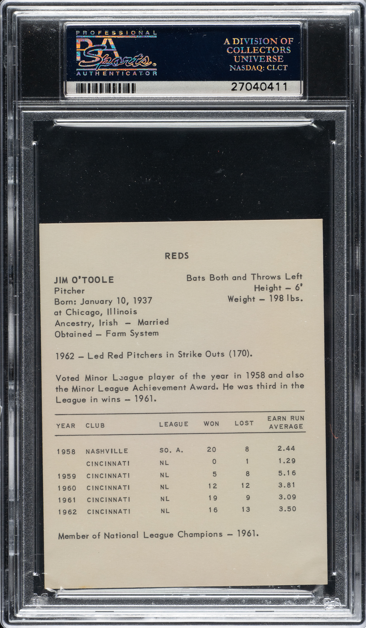 Lot # 2019: 1963 Kahn's Wieners Jim O'Toole PSA MINT 9