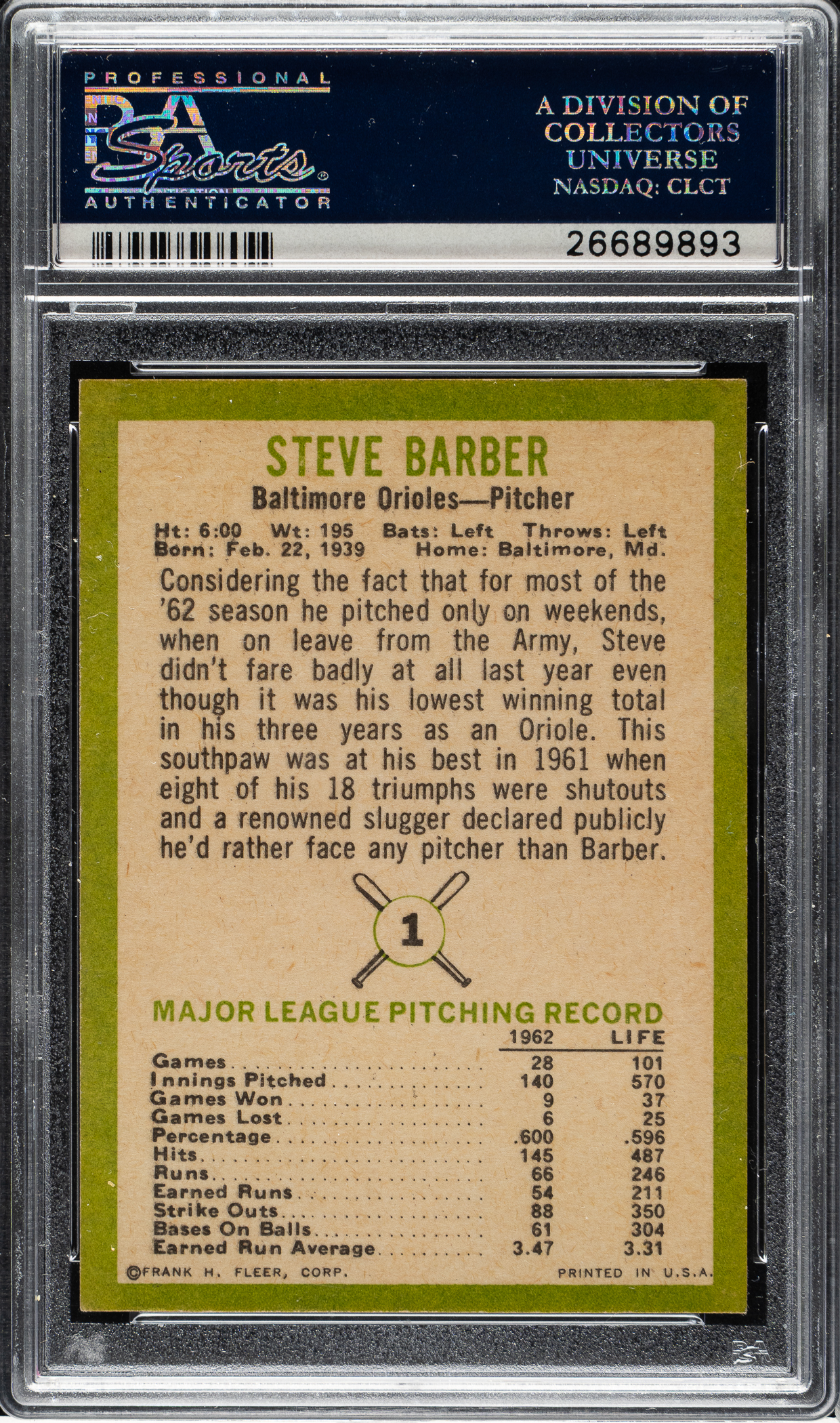 1963 Fleer #4 Brooks Robinson PSA NM-MT 8
