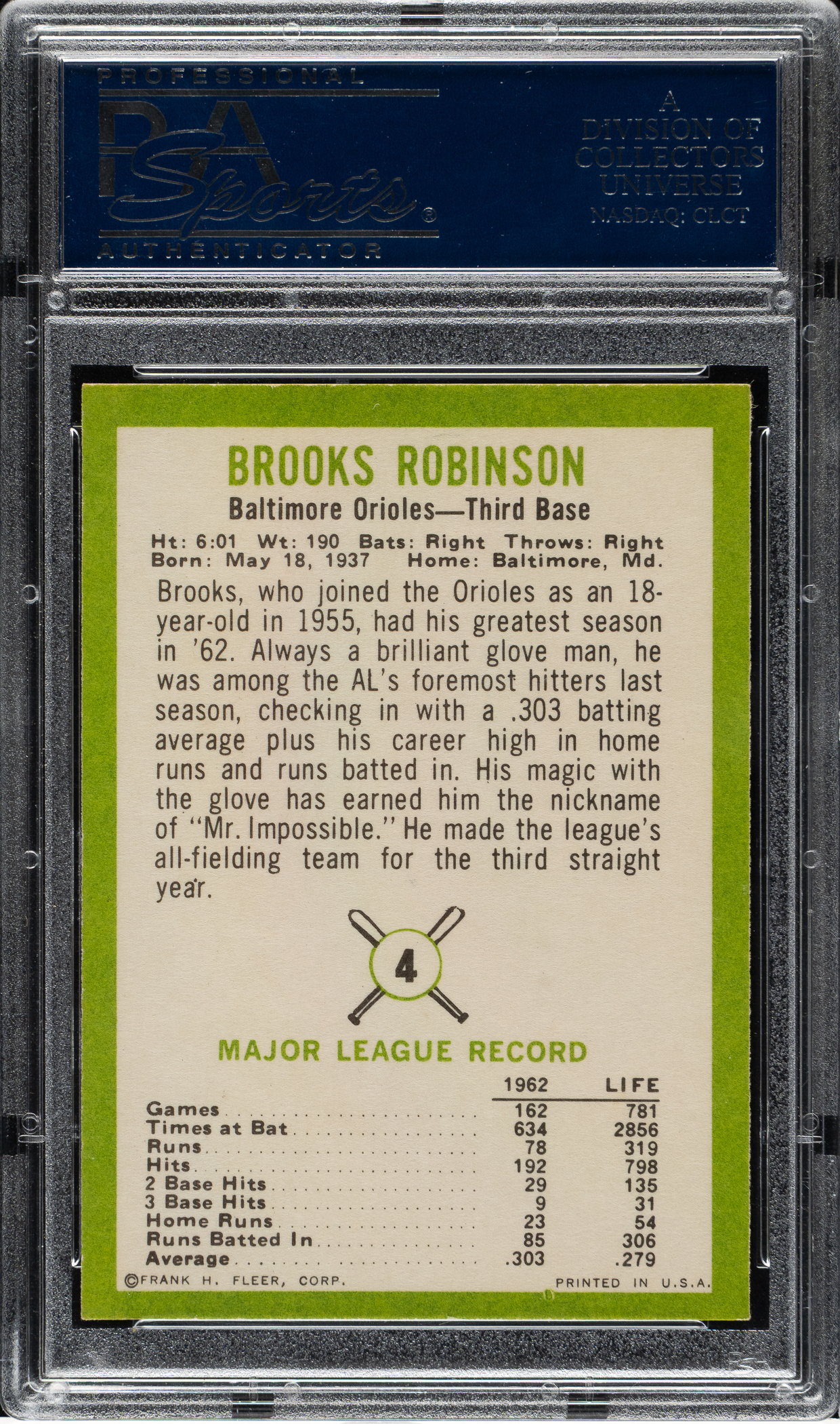 Lot # 2012: 1963 Fleer #4 Brooks Robinson PSA NM-MT 8