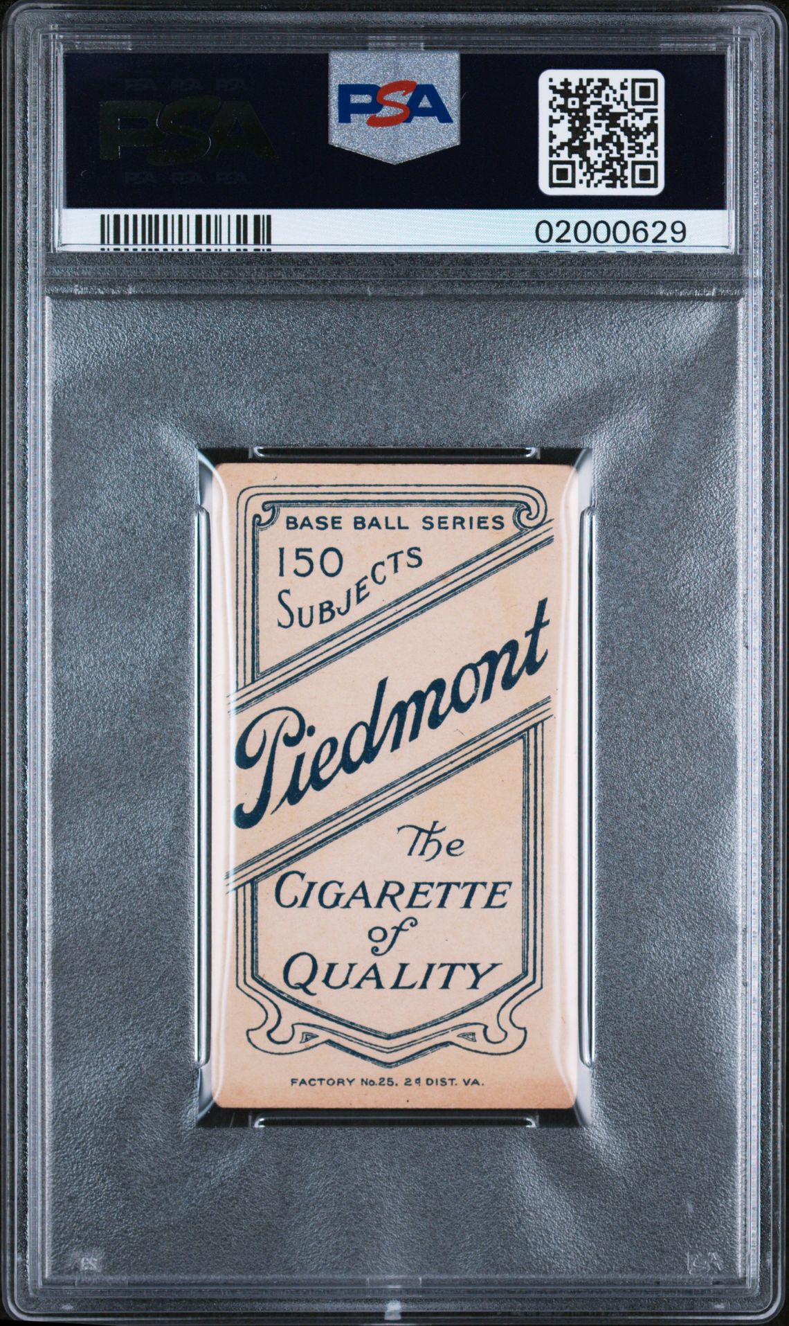 Graded EX 5 by PSA. Outstanding mid-grade example of Washington Senators Hall of Famer Walter Johnson (portrait) from the classic T206 White Border set. This card has a bright yellow background, a crisp image, and even corner wear. The Piedmont 150/25 advertising reverse is boldly printed. This is a beautiful card in an extremely desirable grade.